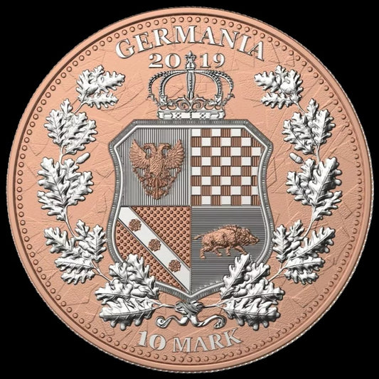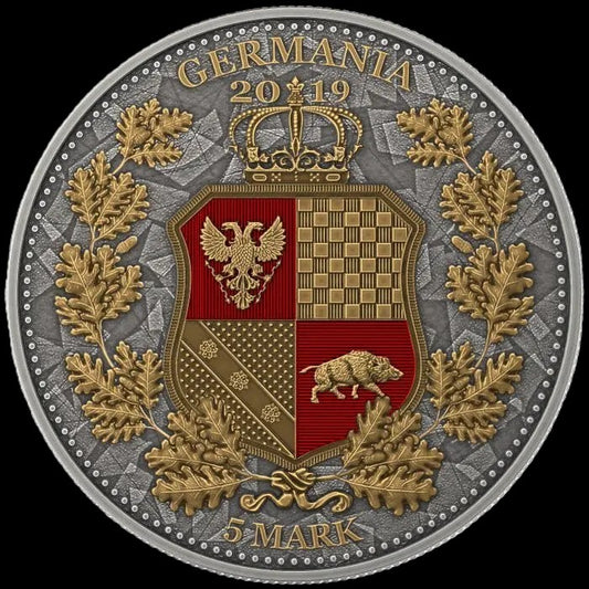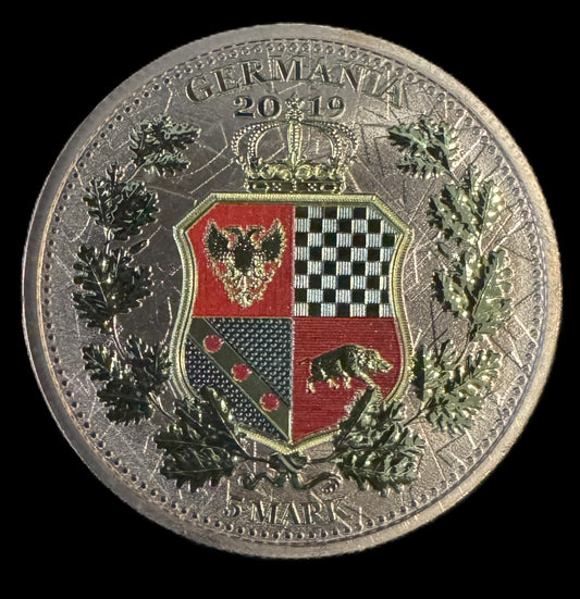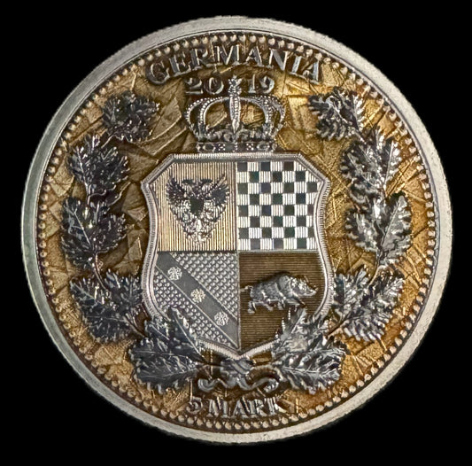 2019 Britannia Germania 1 oz .999 Silver Coin w/Gold & Black Varnish
