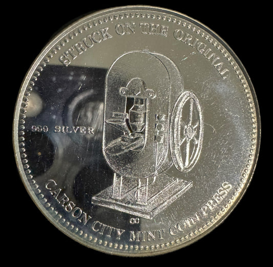1980 Commemorative Carson City Mint Coin Press 1 oz .999 Silver Coin