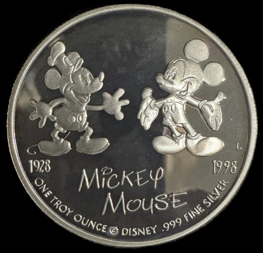 1998 Disney 70 Years With Mickey Mouse 1 oz .999 Silver Coin