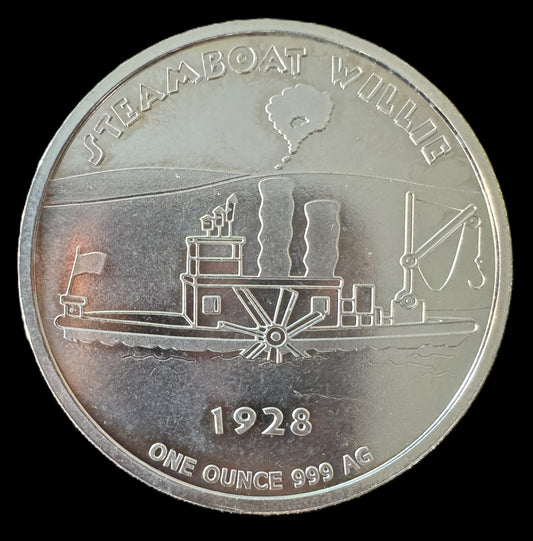 1928 Disney Film Steamboat WIlie 1 oz .999 Silver Coin