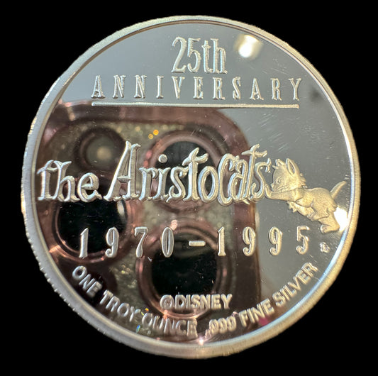 1995 Disney 25th Anniversary The Aristocats 1 oz .999 Silver Coin