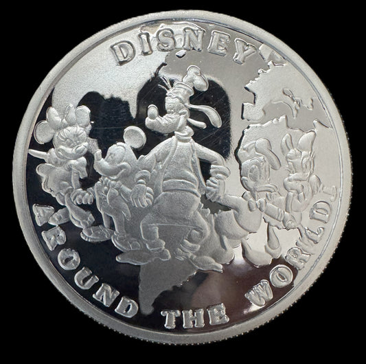 1988 Disney Around the World “Goofy & Pluto” 1 oz .999 Silver Coin COA #3993