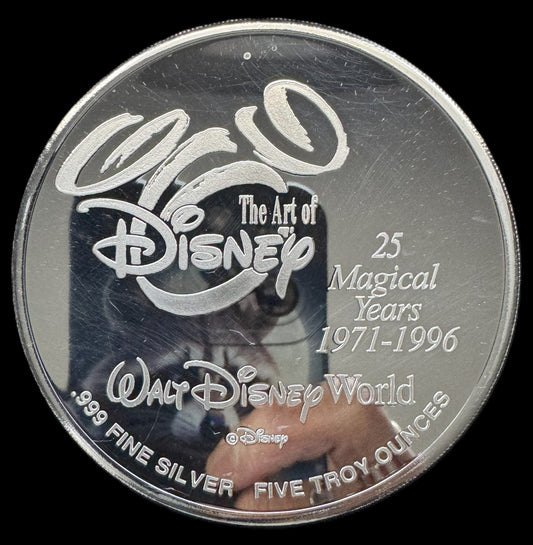 1996 Disney World 25th Anniversary 5 oz .999 Silver Coin