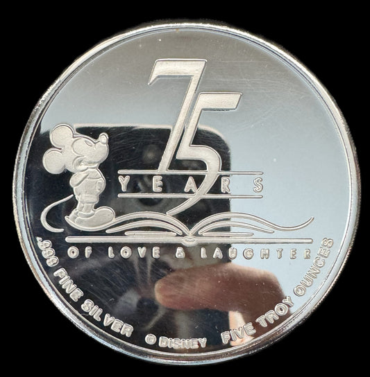 1998 Disney 75 Years of Love and Laughter 5 oz .999 Silver Coin