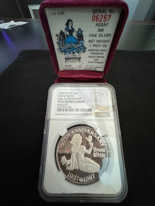 1987 Disney Snow White 50th Anniversary 1 oz .999 Silver Coin