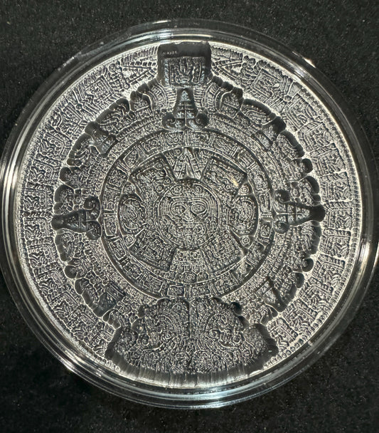 2022 Ultra-High Relief Aztec Sun Stone Calendar 2 oz Silver Coin