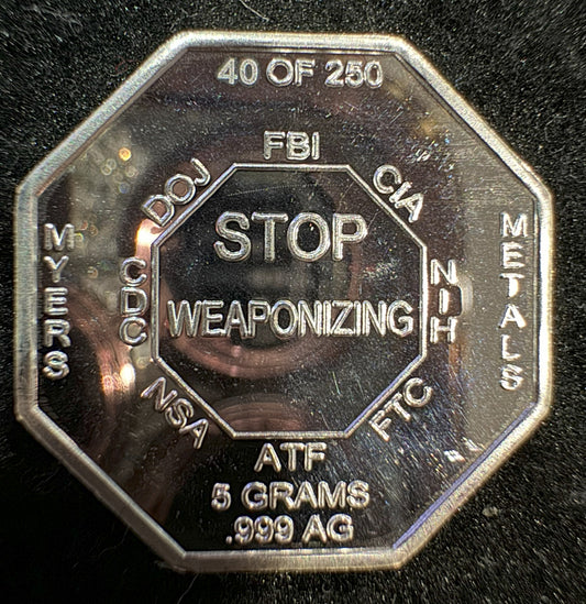 2023 Joe Biden “Stop Weaponizing” 5 Gram .999 Silver Piece