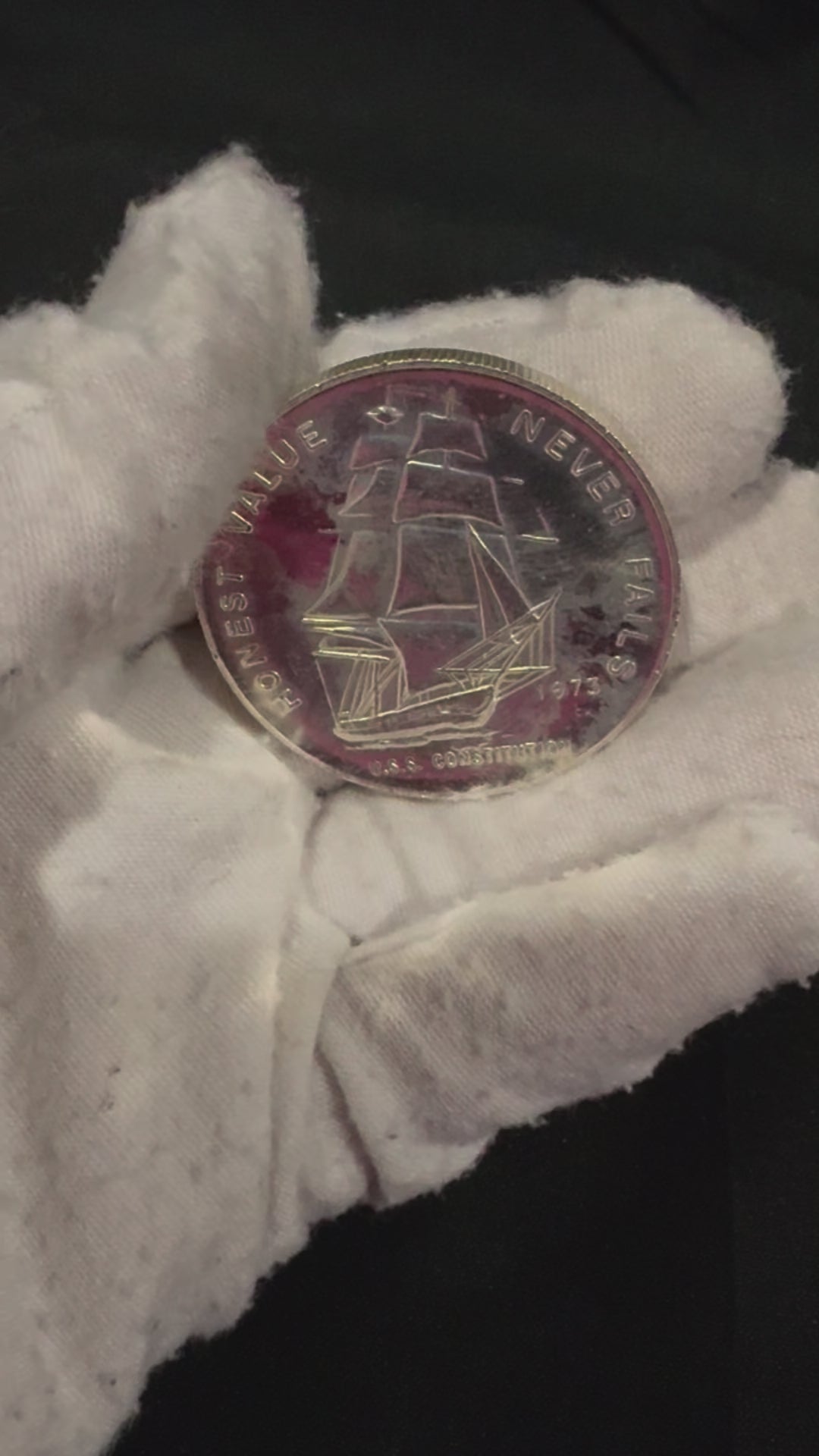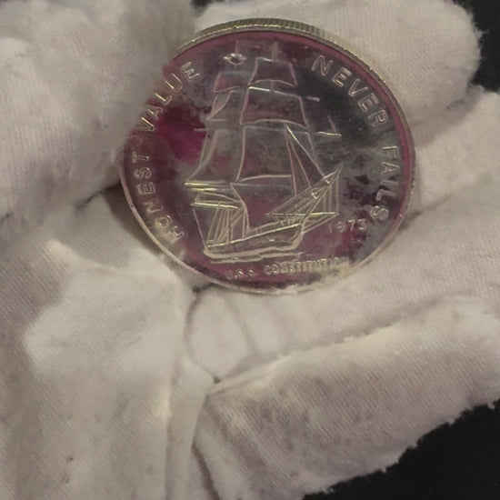 The 1973 USS Constitution 1 oz .999 Silver Coin is a proof strike coin minted by Constitution Mint in the United States. It contains 1 troy ounce of .999 fine silver, featuring the iconic USS Constitution ship. This coin is a valuable piece for collectors and investors due to its silver content and historical significance. It comes uncertified and is a great addition to any precious metal collection.