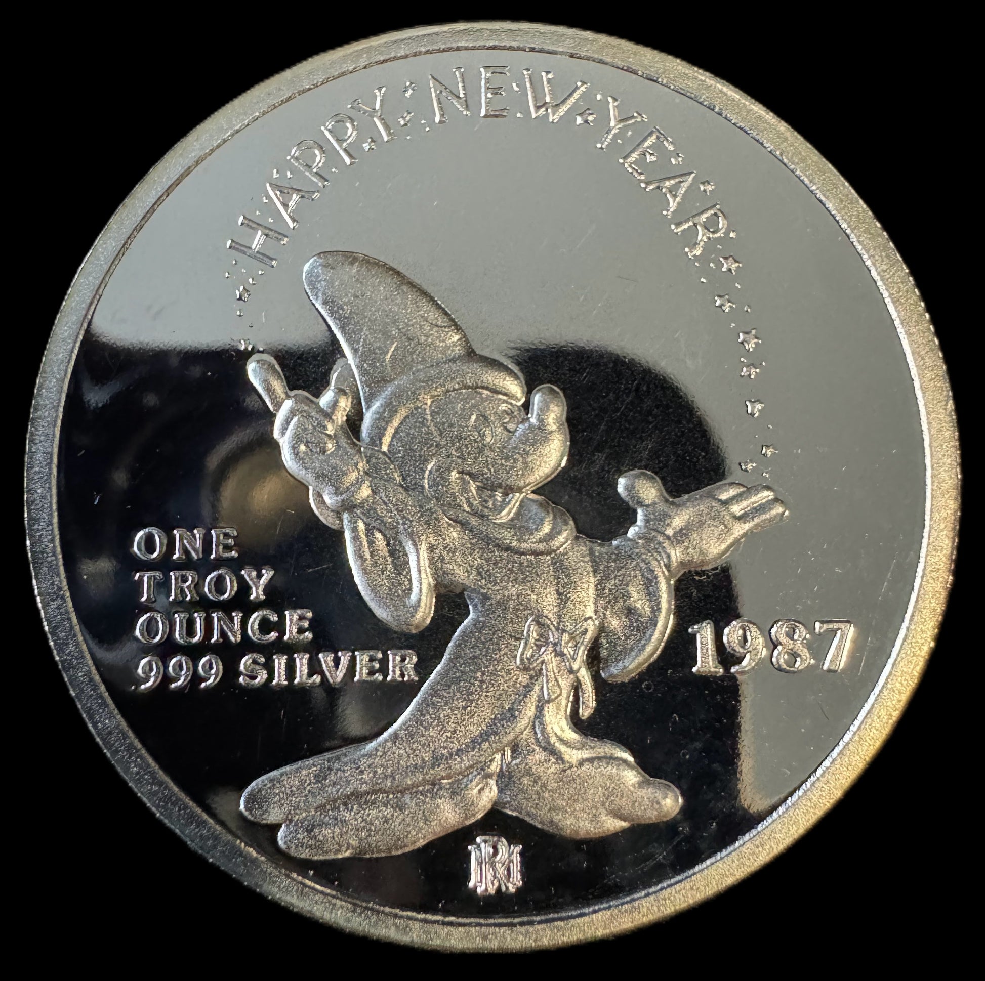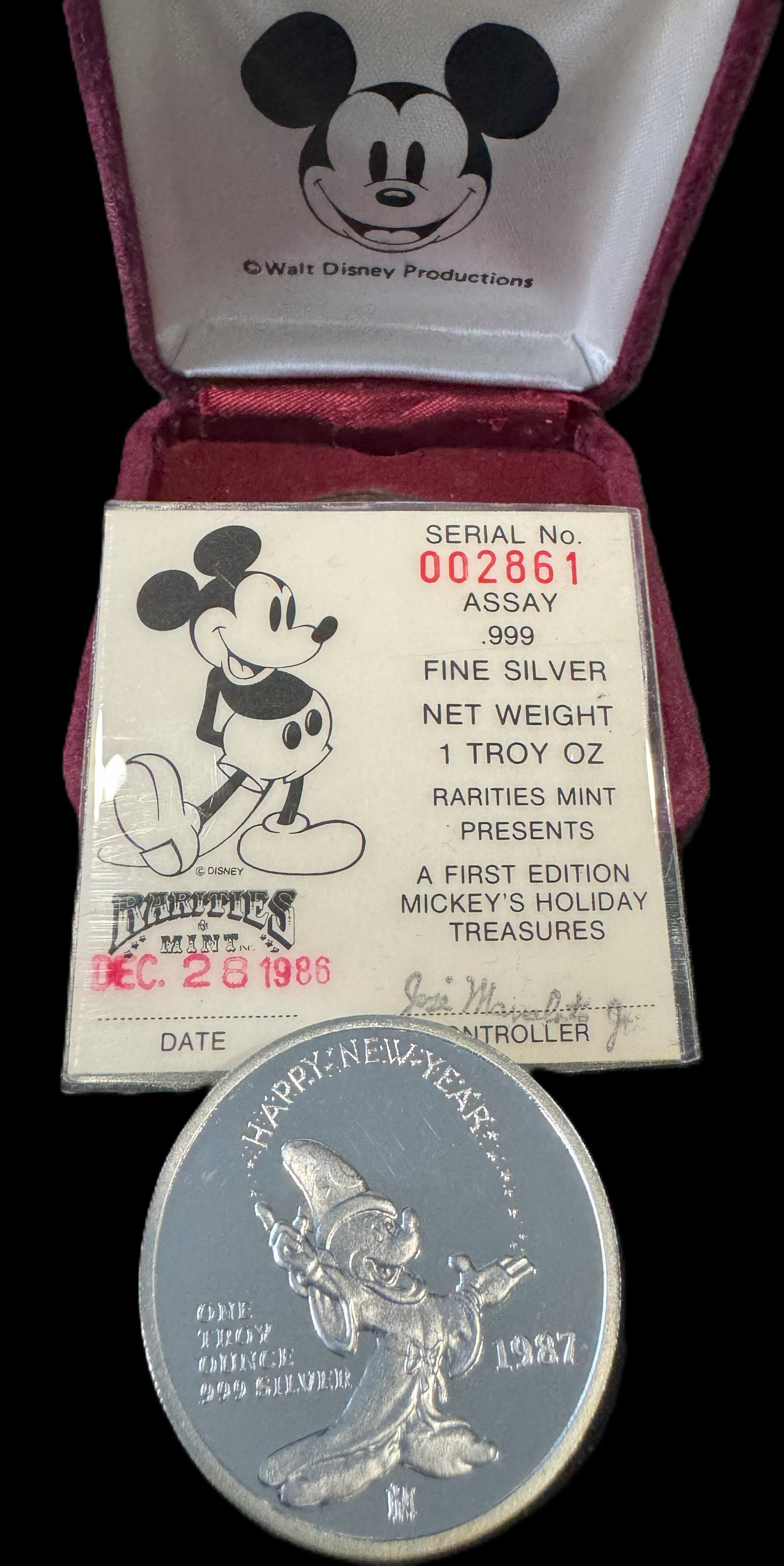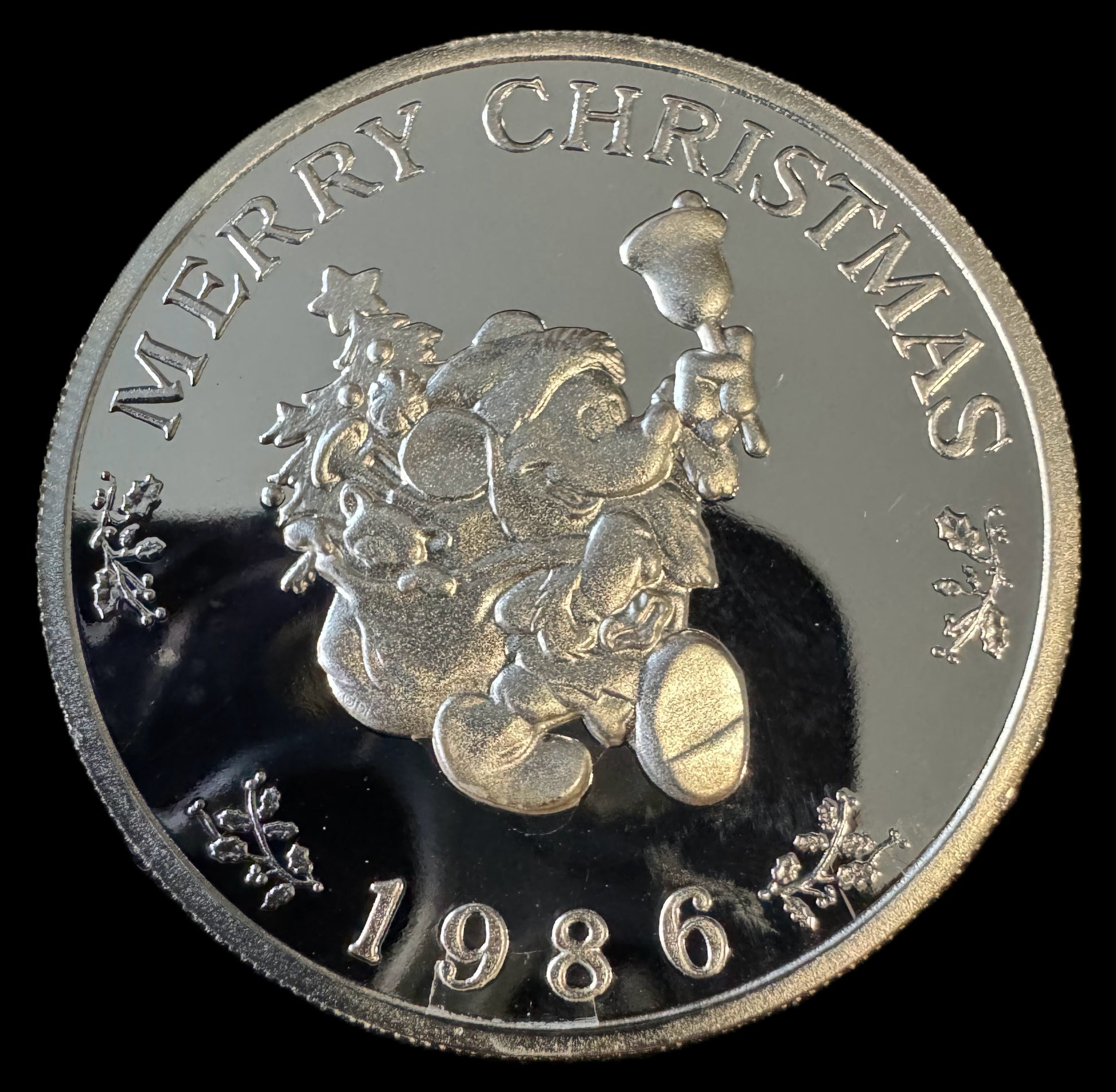 1986 Disney “Mickey’s Holiday Treasures” 1 oz .999 Silver Coin