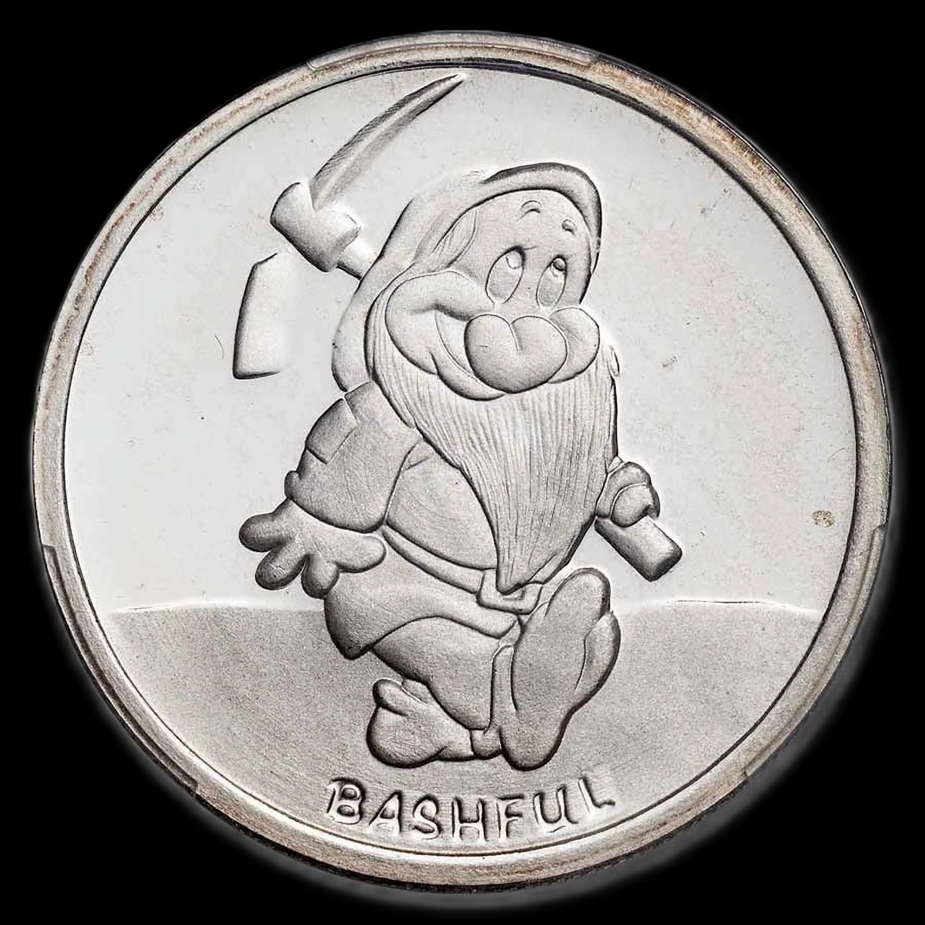 1987 Disney’s 50th Snow White & The Seven Dwarfs “Bashful” 5 oz .999 Silver Coin