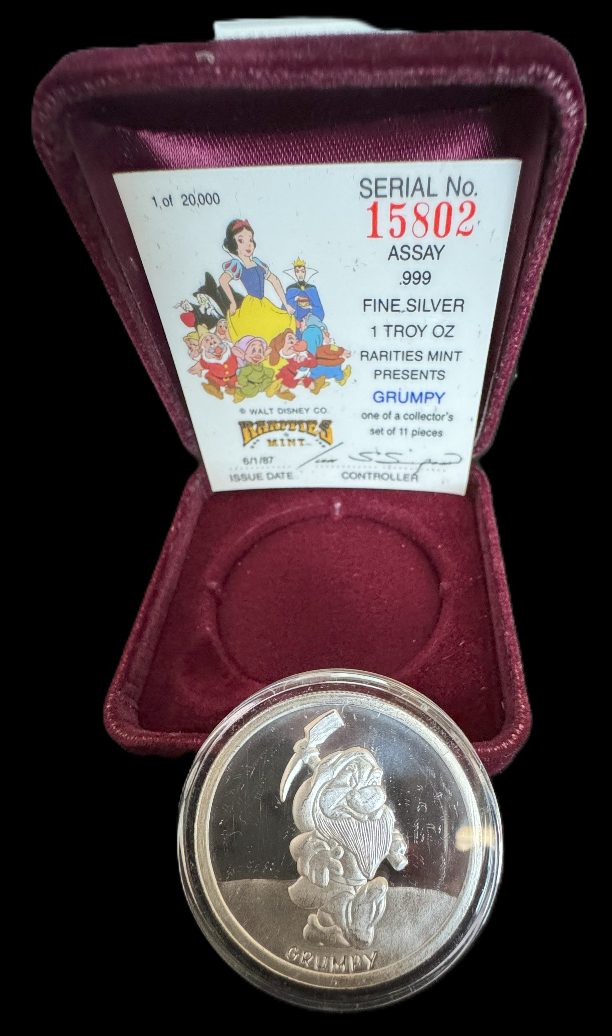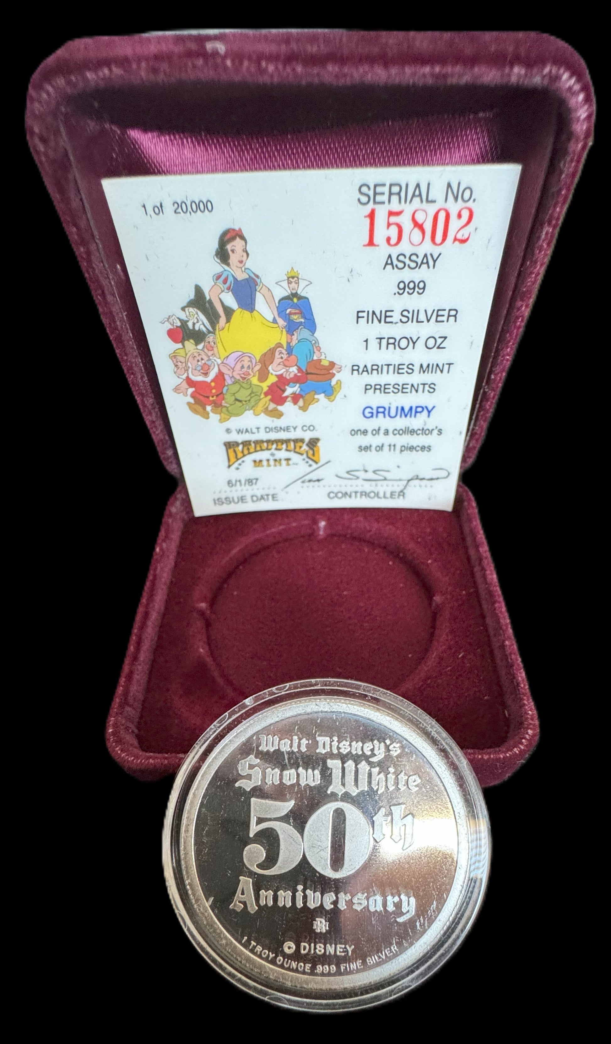 1987 Disney’s 50th Snow White & The Seven Dwarfs “Grumpy” 1 oz .999 Silver Coin