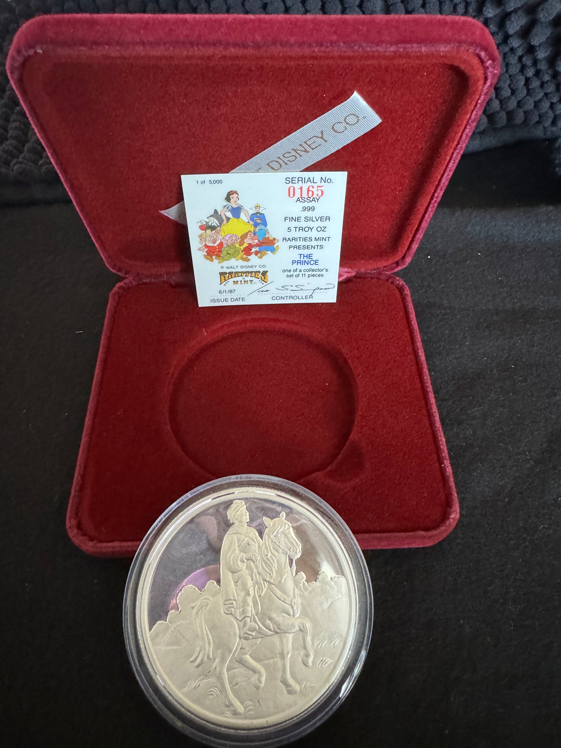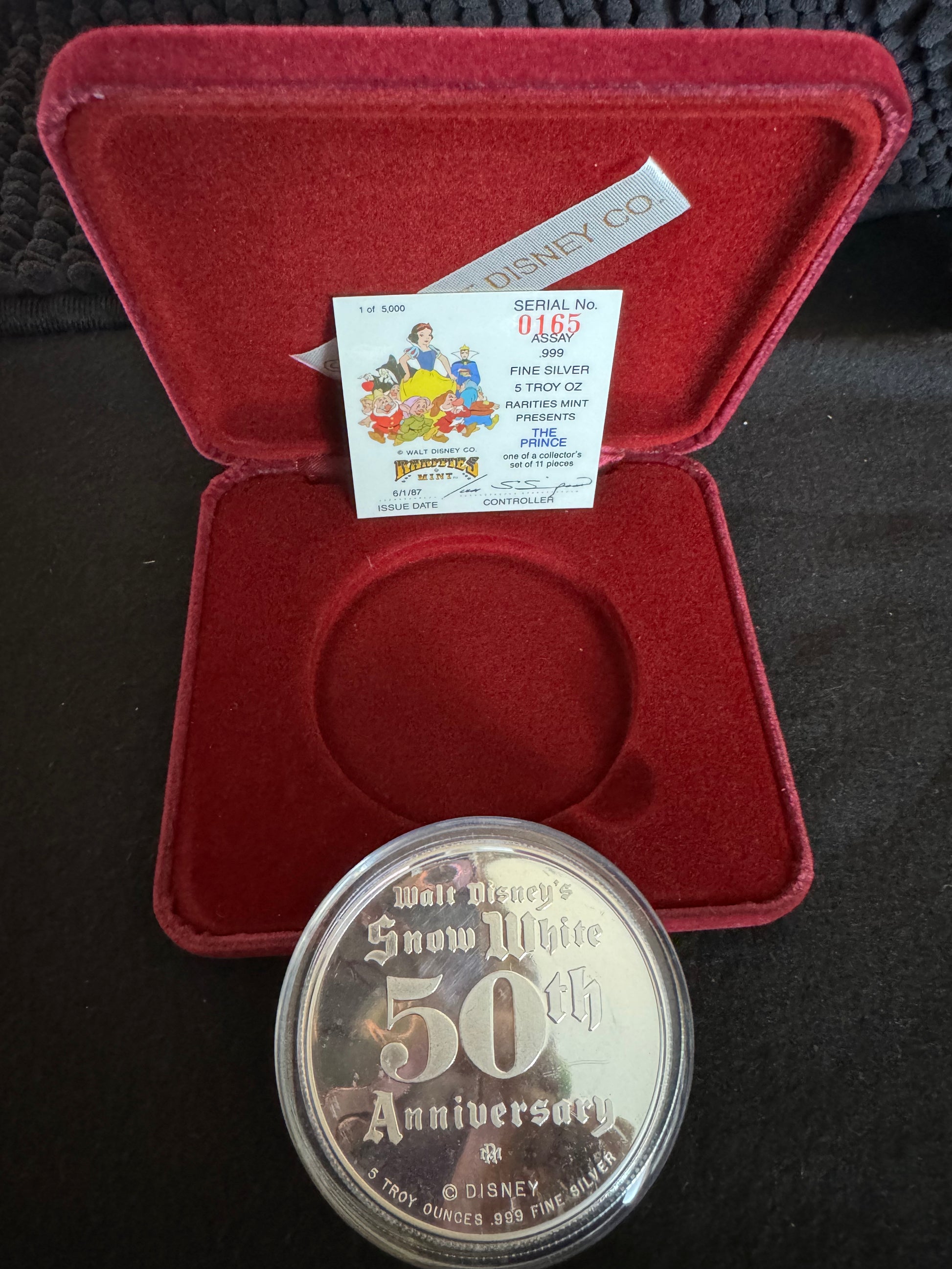 1987 Disney’s 50th Snow White & The Seven Dwarfs “Prince” 5 oz .999 Silver Coin