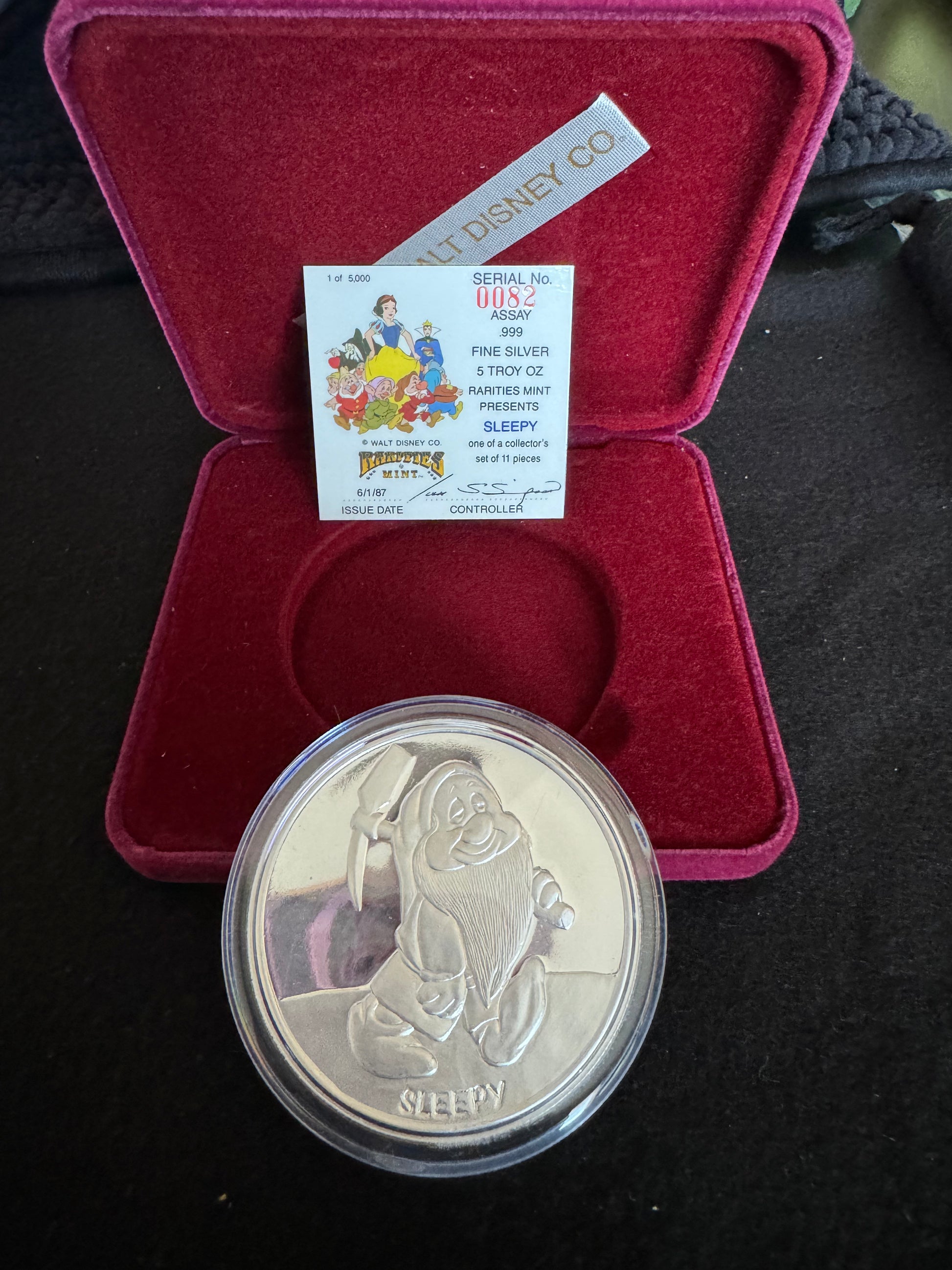1987 Disney’s 50th Snow White & The Seven Dwarfs “Sleepy” 5 oz .999 Silver Coin