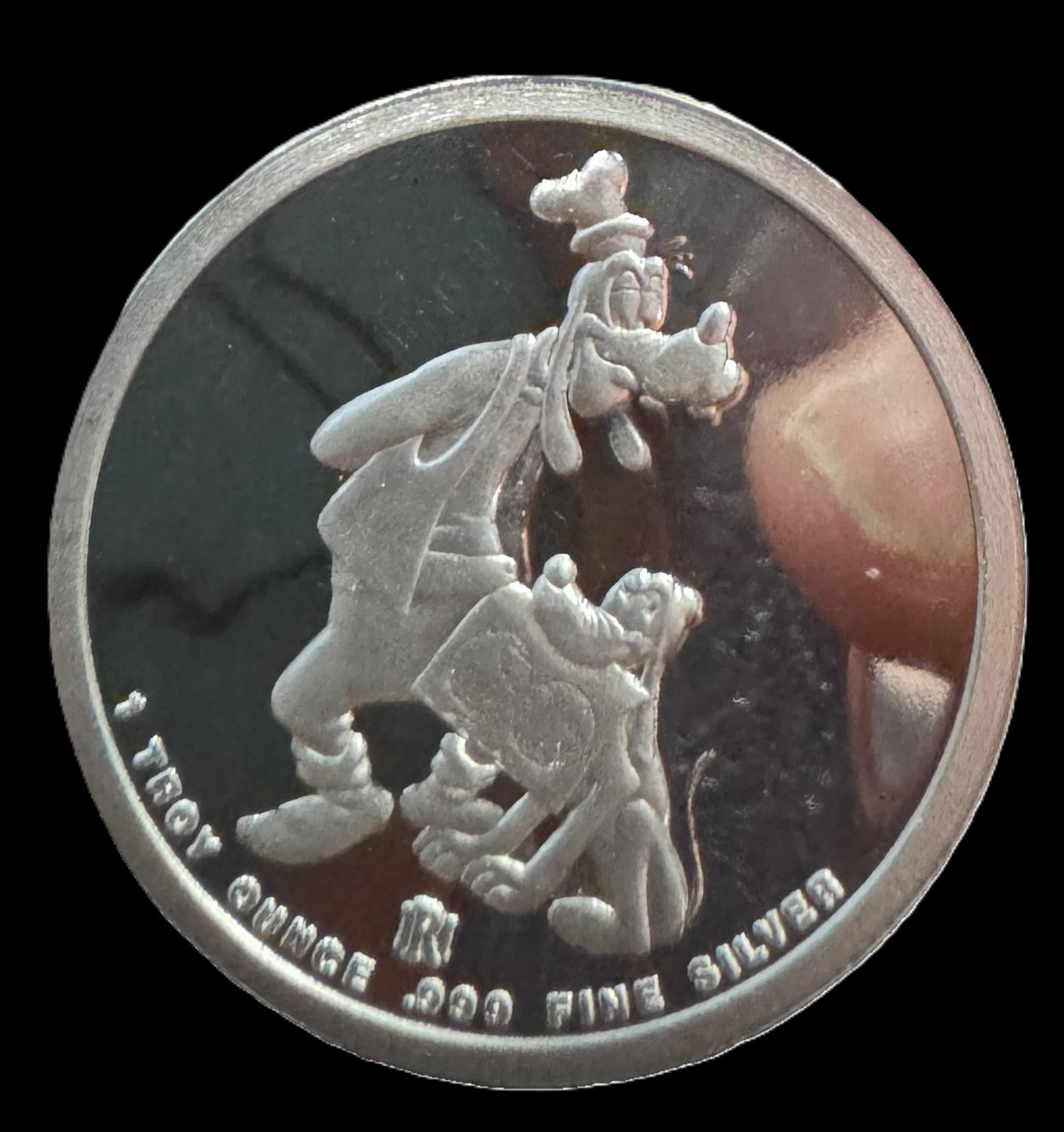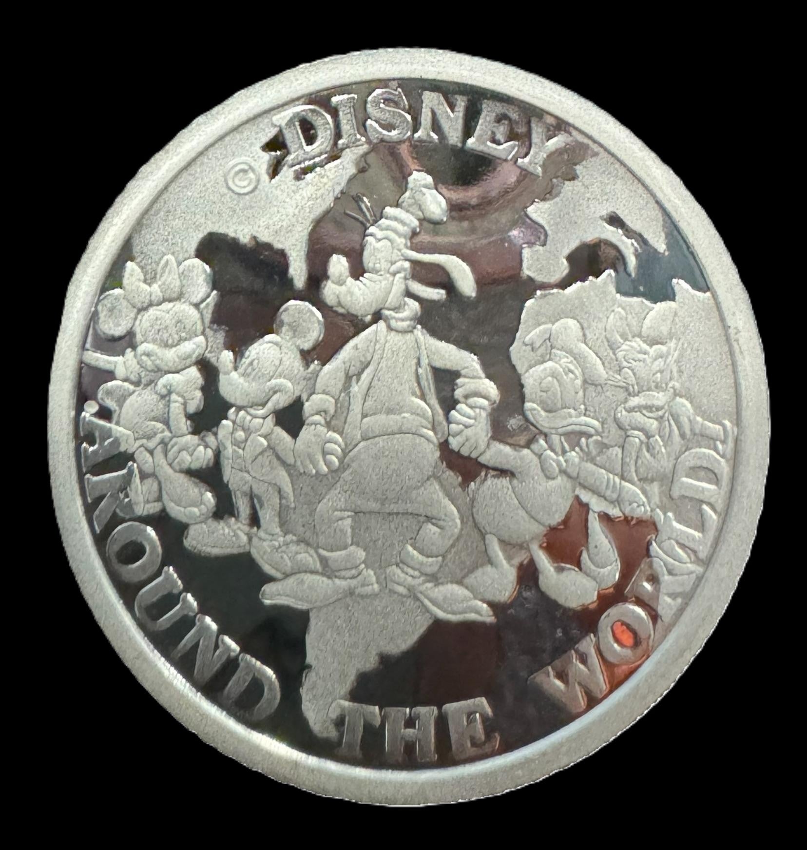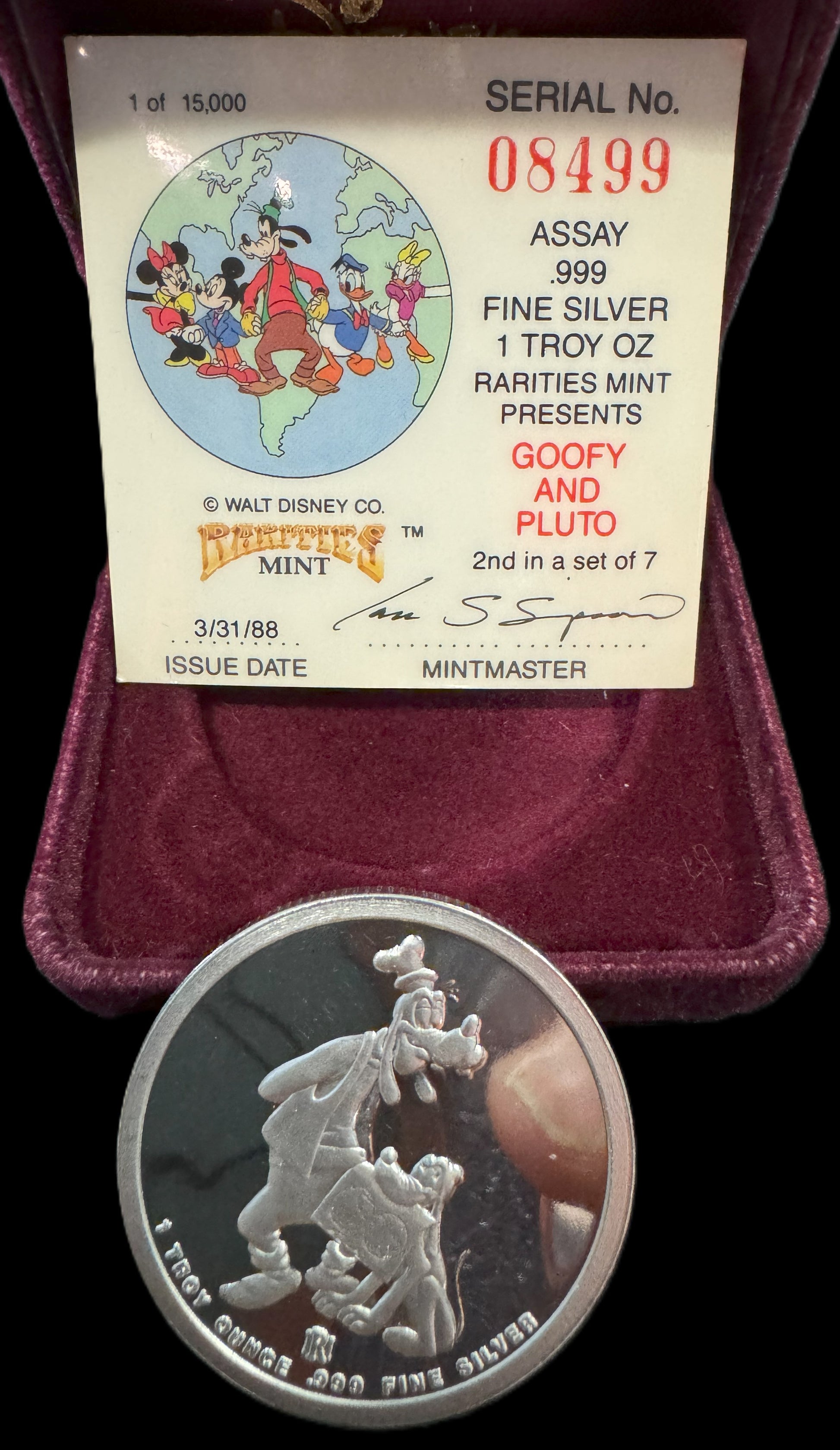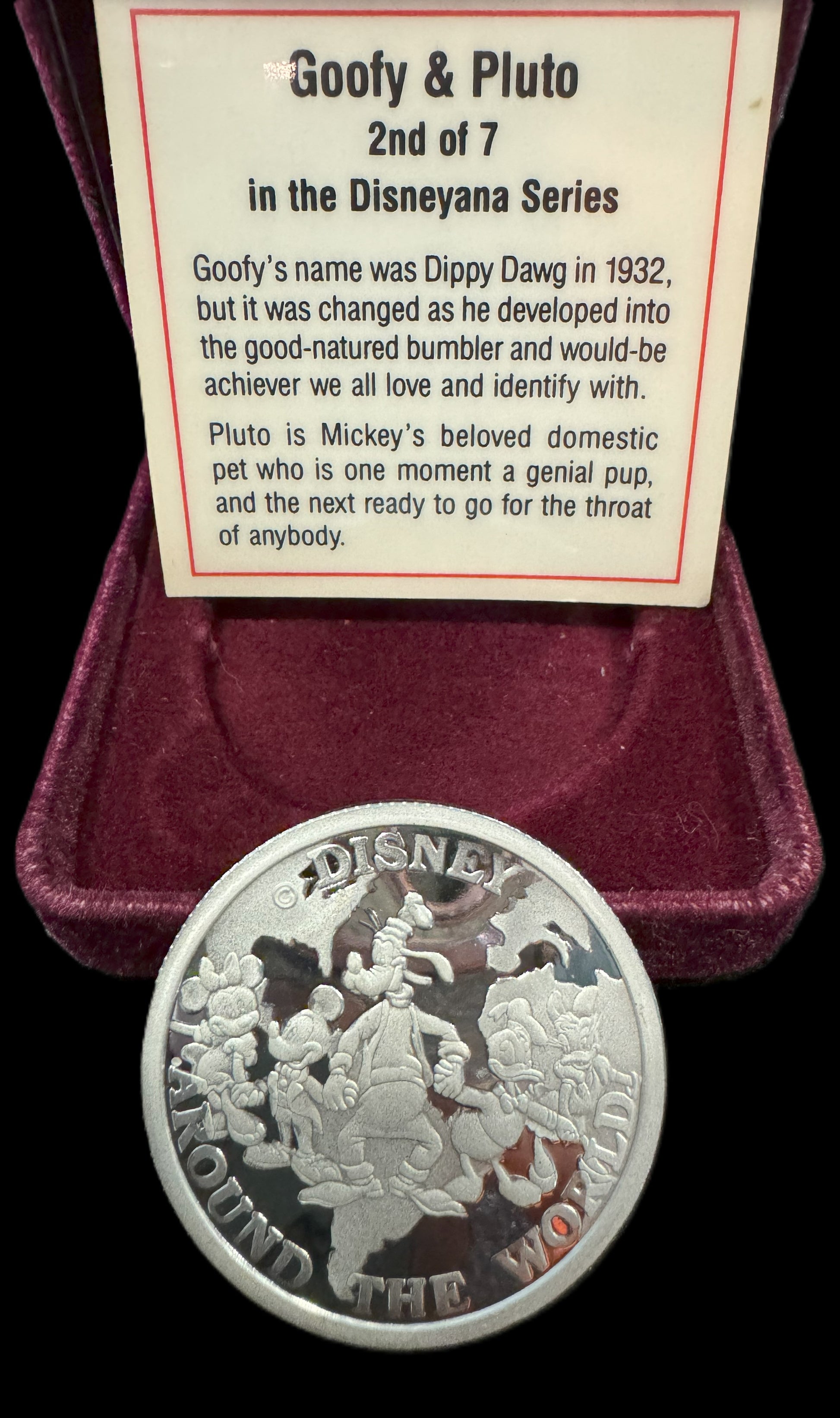1988 Disney Around the World “Goofy & Pluto” 1 oz .999 Silver Coin COA #8499