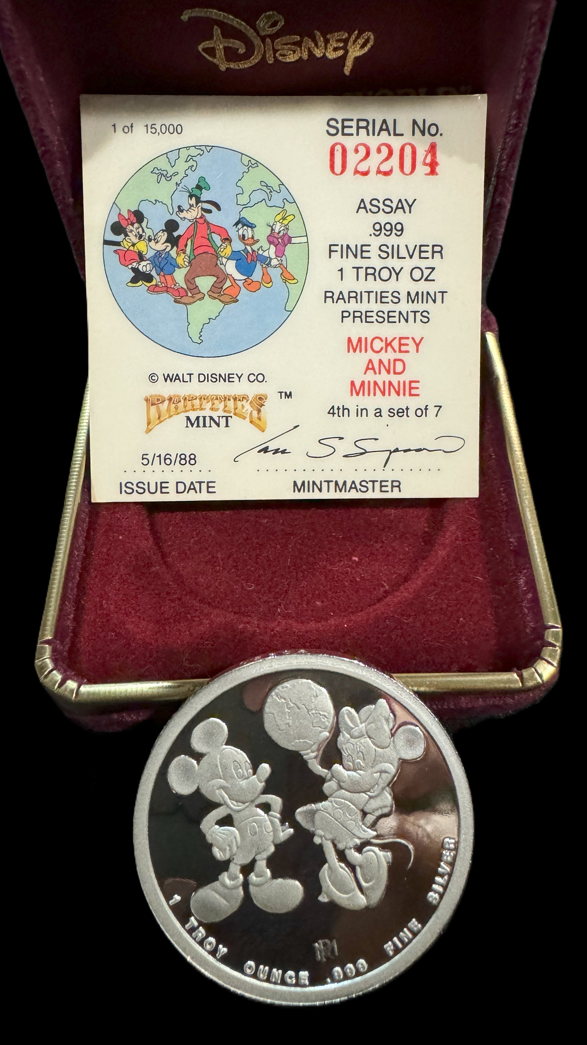 1988 Disney Around the World “Mickey & Mini Mouse” 1 oz .999 Silver Coin