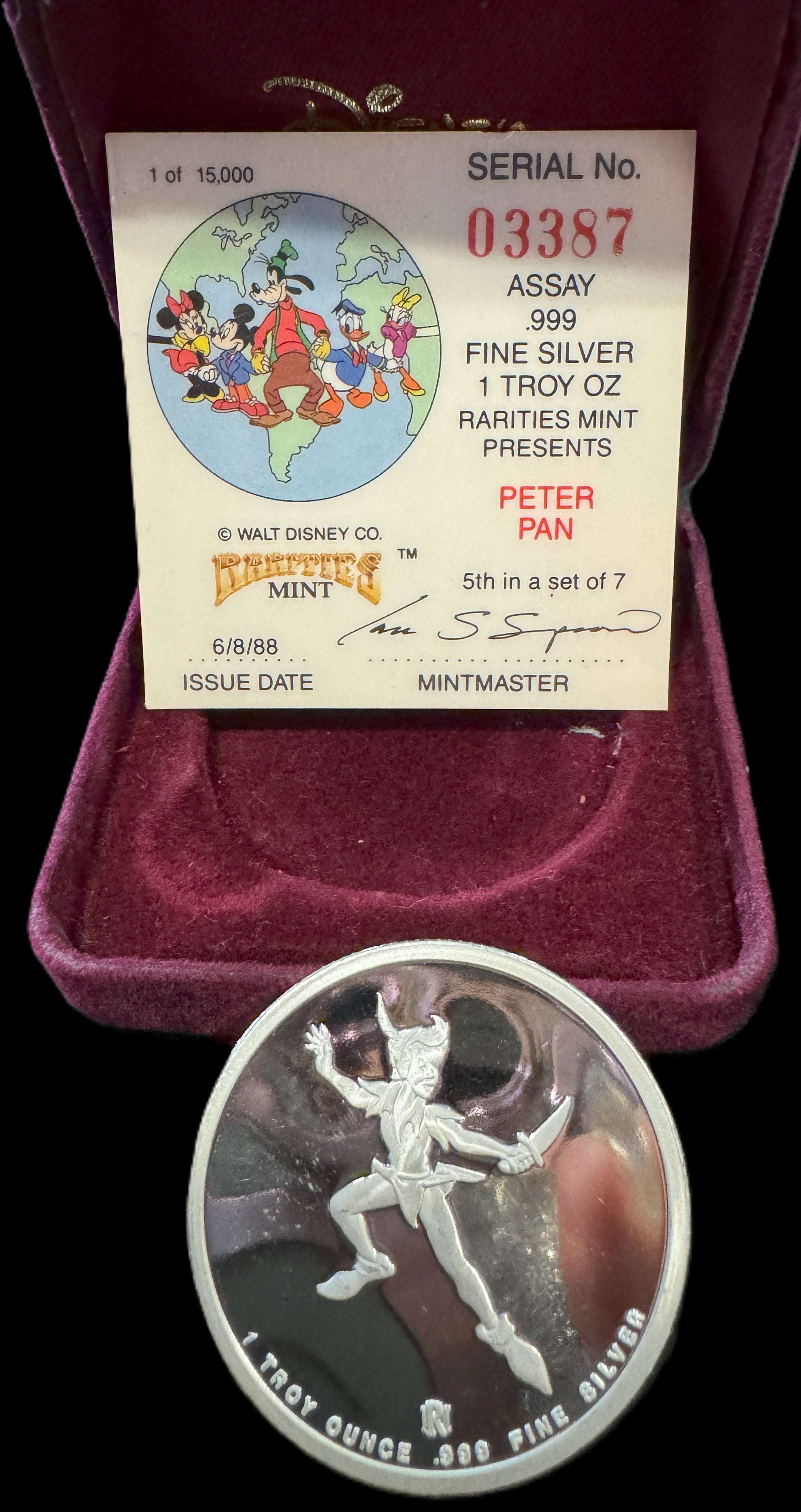 1988 Disney Around the World “Peter Pan” 1 oz .999 Silver Coin