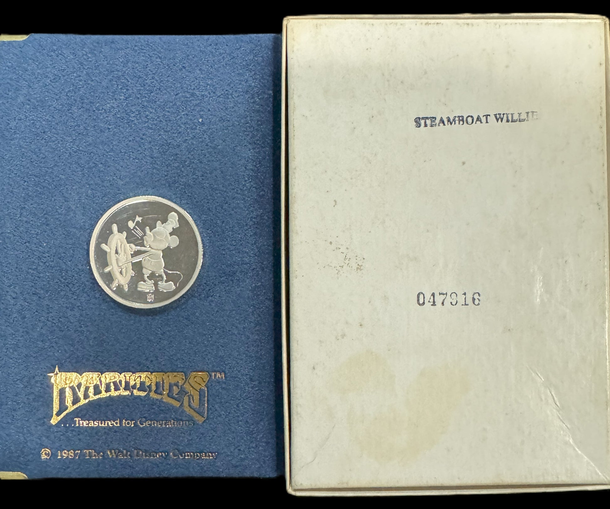 1988 Disney Mickey 60 Years With You Steamboat Willie 1 oz .999 Silver Coin COA #047916