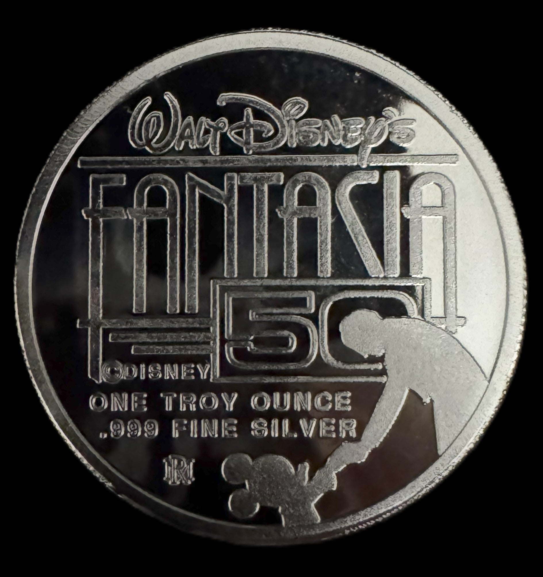 1990 Disney Fantasia Alligator & Hippo 1 oz .999 Silver Coin w/22K Gold Relief