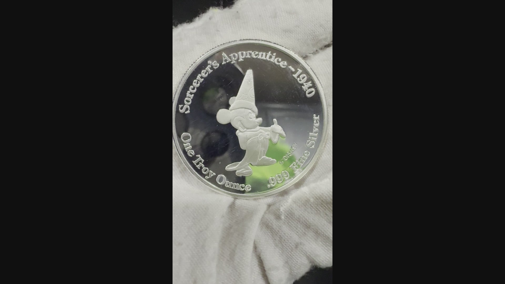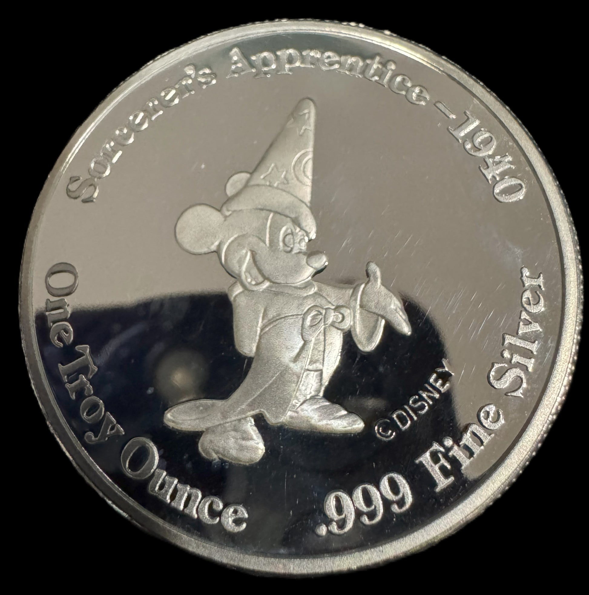 The 1994 Disneyana Convention 1 oz .999 Silver Coin was produced by Liberty Mint in the United States. This round coin features Mickey Mouse from the Disney franchise and is composed of .999 fine silver. It was issued as a special edition for the Disneyana Convention in 1994, making it a coveted collectible item for Disney enthusiasts and coin collectors alike. The coin comes with a Certificate of Authenticity (#446) and showcases the iconic Disney character in a precious metal form.