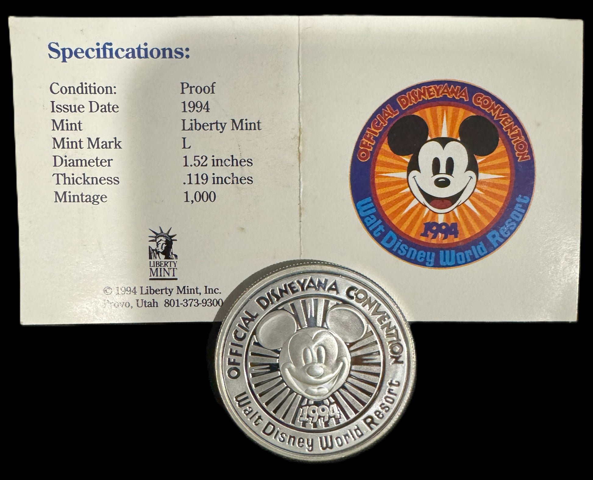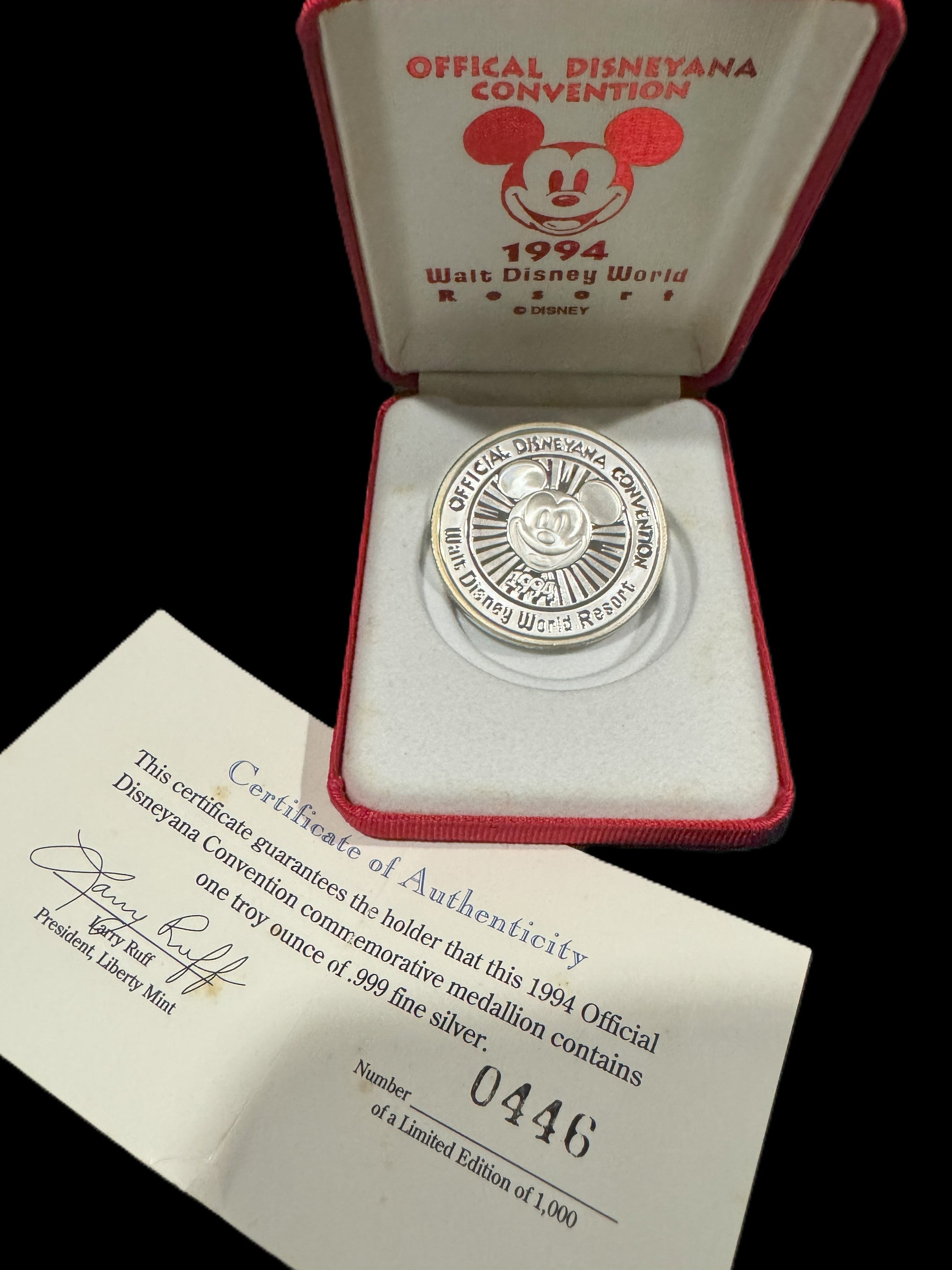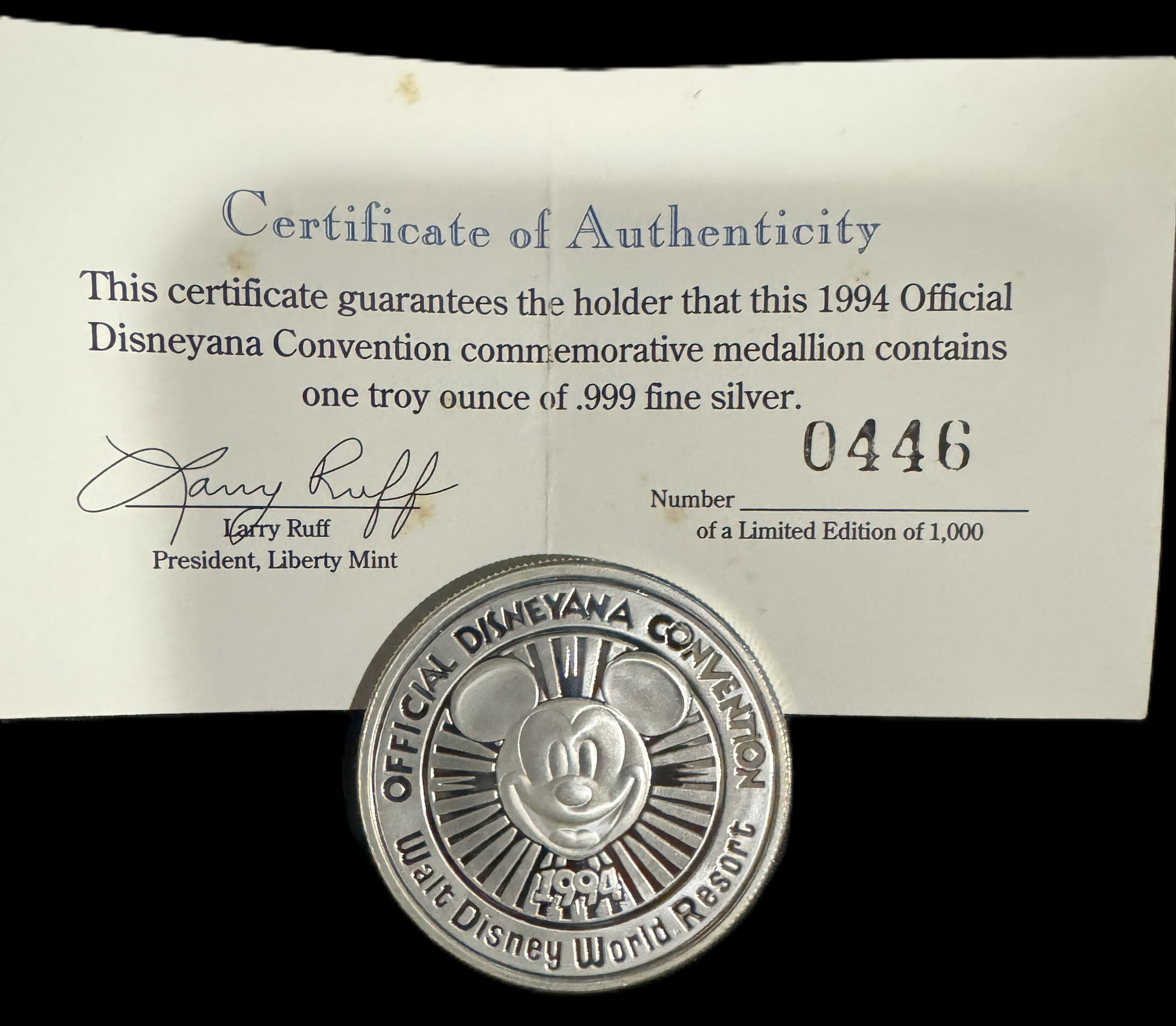 1994 Disneyana Convention 1 oz .999 Silver Coin COA #446