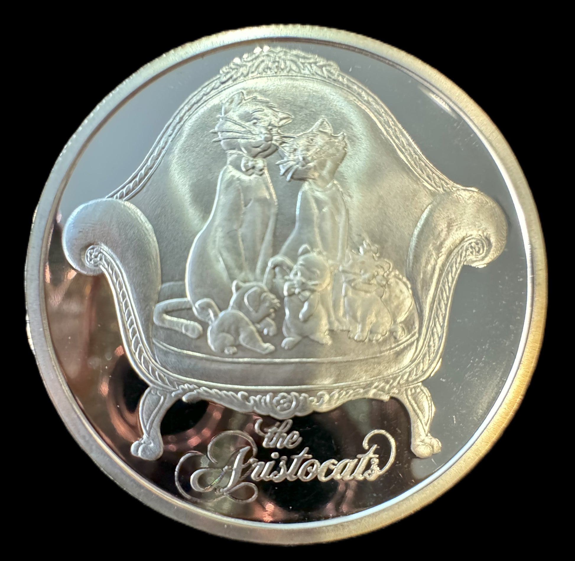 1995 Disney 25th Anniversary The Aristocats 1 oz .999 Silver Coin