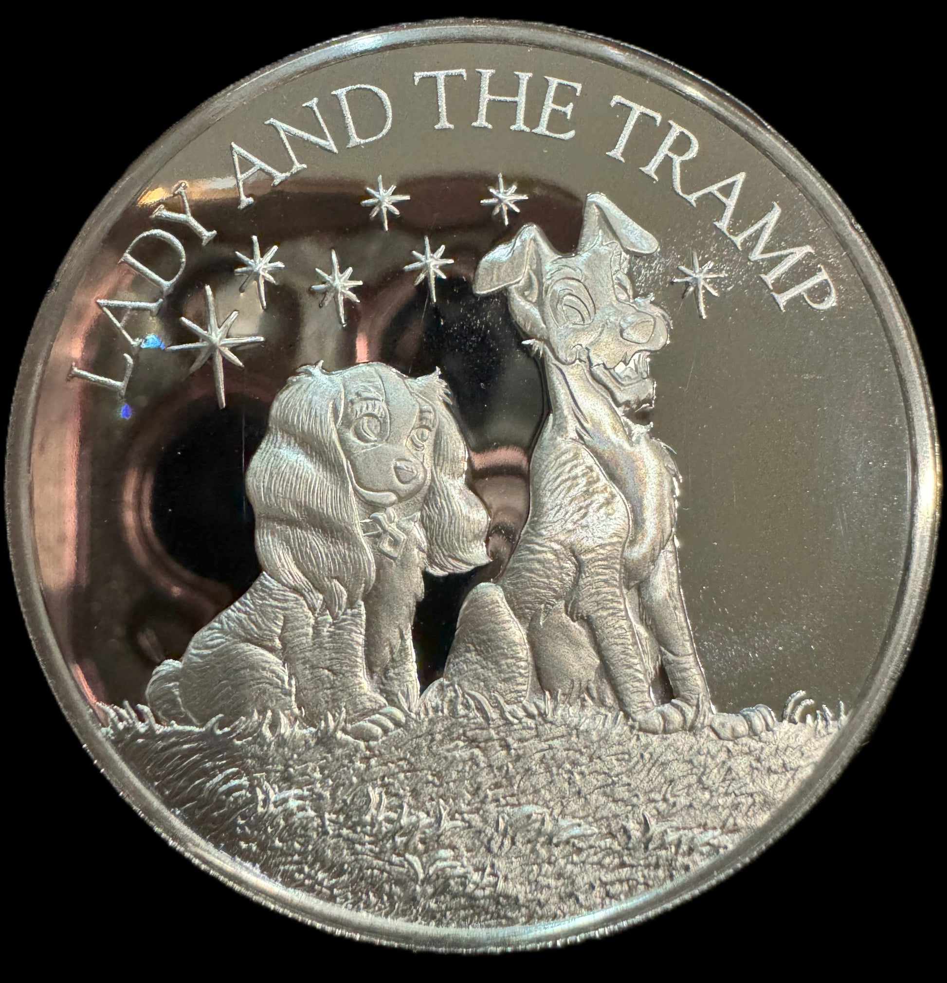 1995 Disney Lady and The Tramp 1 oz .999 Silver Coin