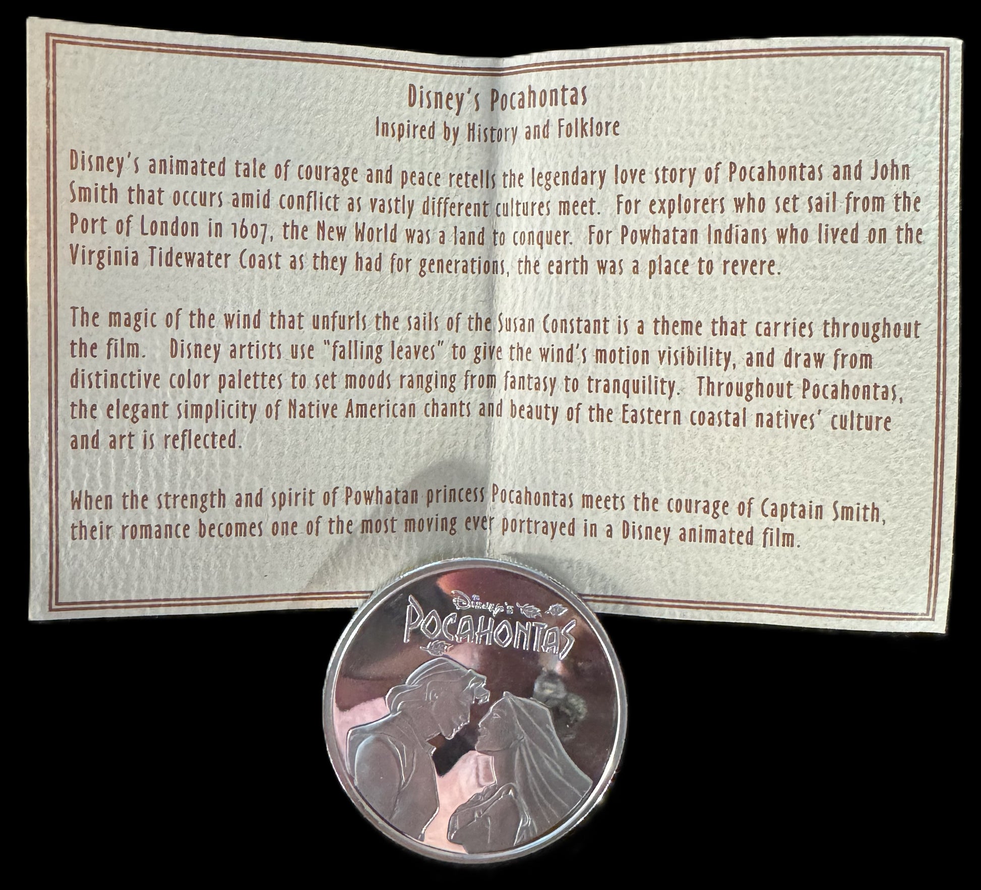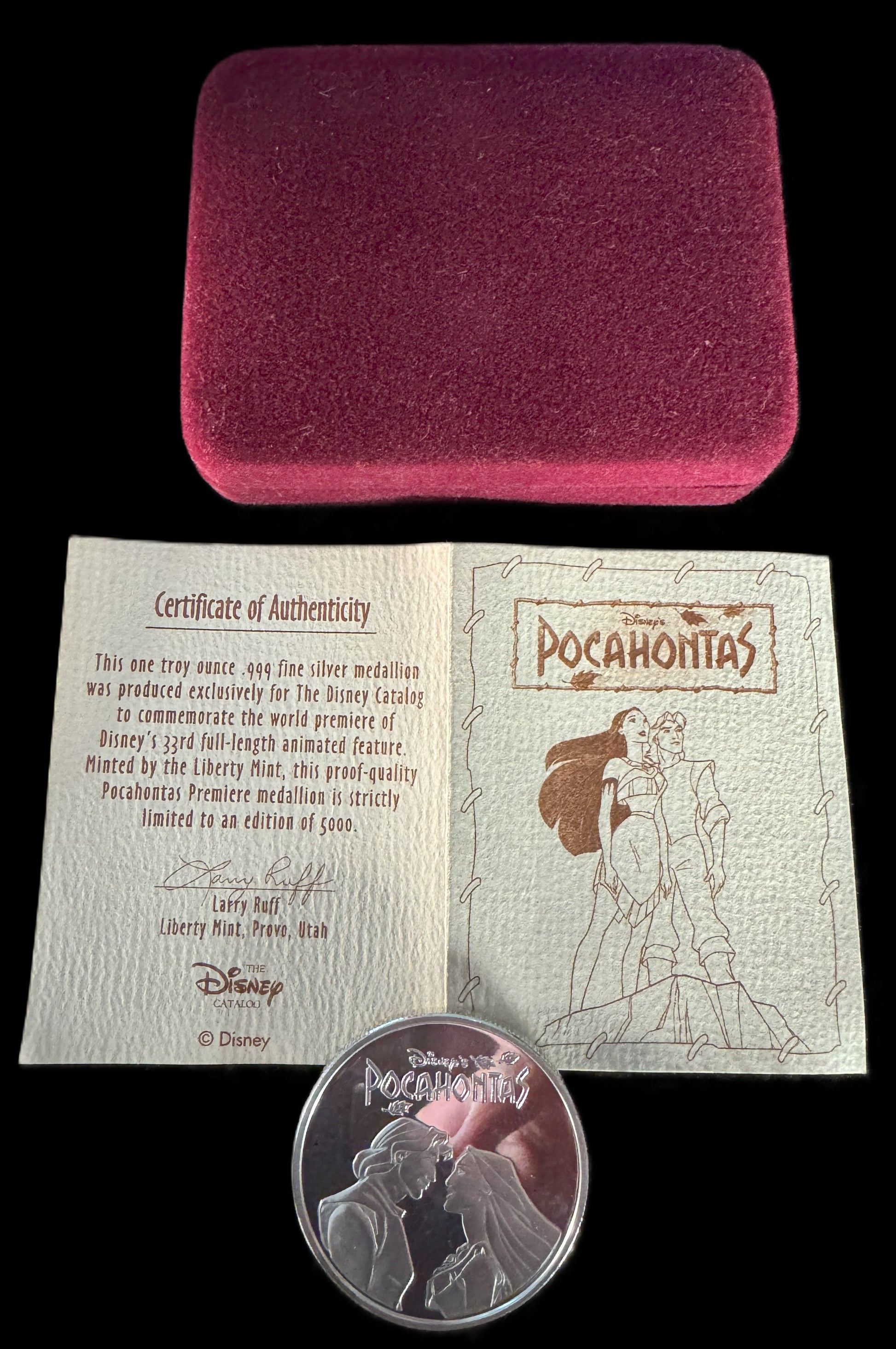 1995 Disney Pocahontas 1 oz .999 Silver Coin COA #00191