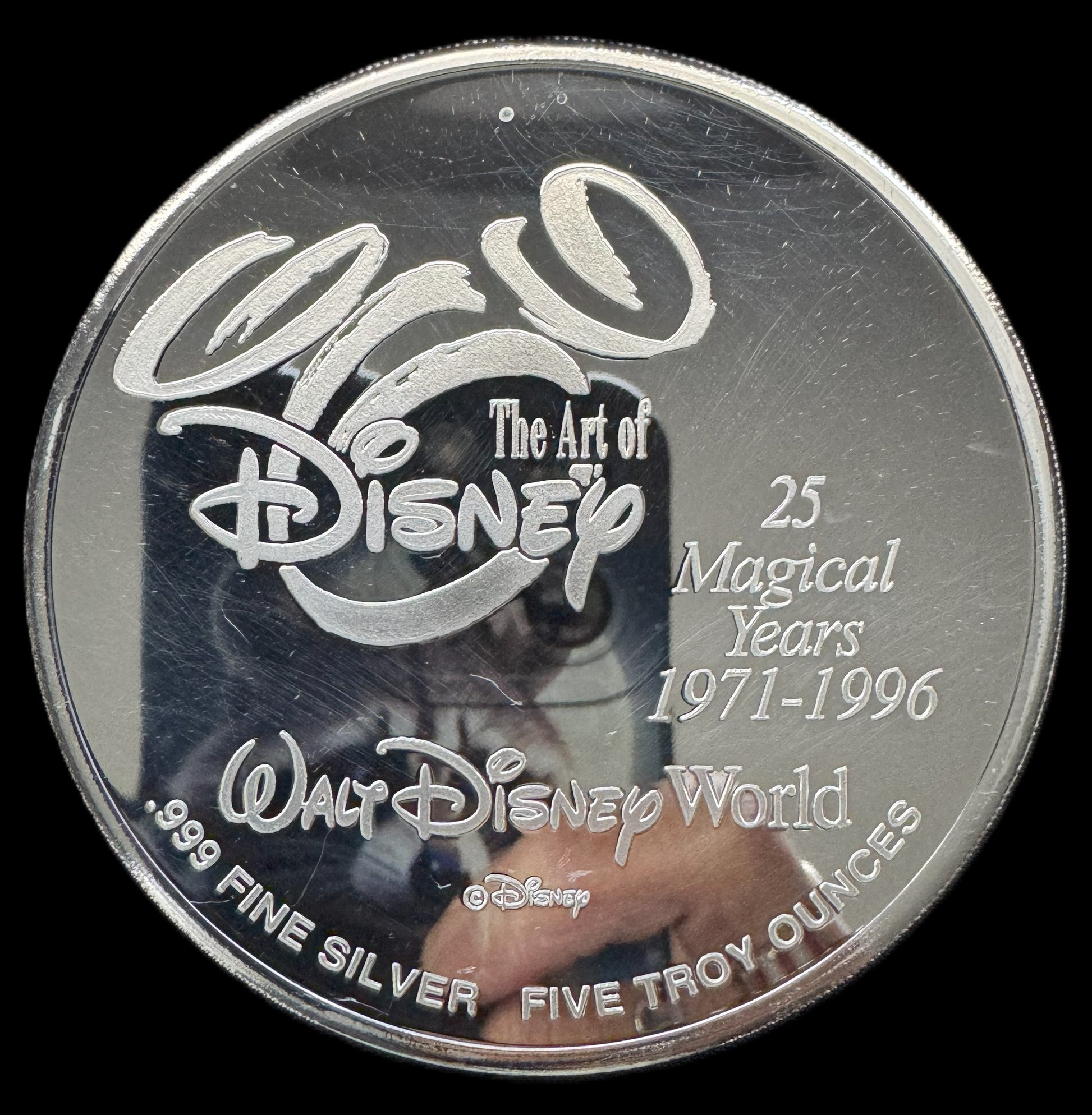 1996 Disney World 25th Anniversary 5 oz .999 Silver Coin