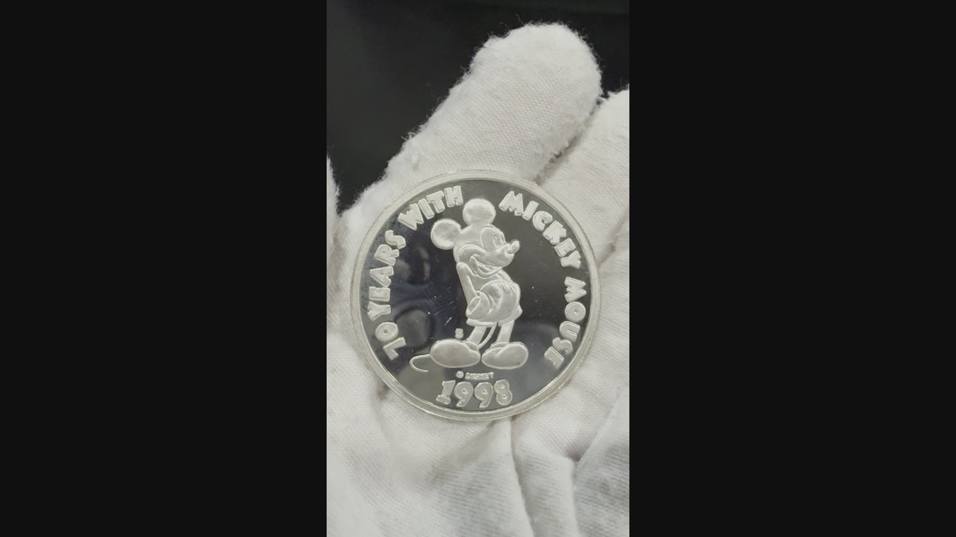 1998 Disney 70 Years With Mickey Mouse 1 oz .999 Silver Coin