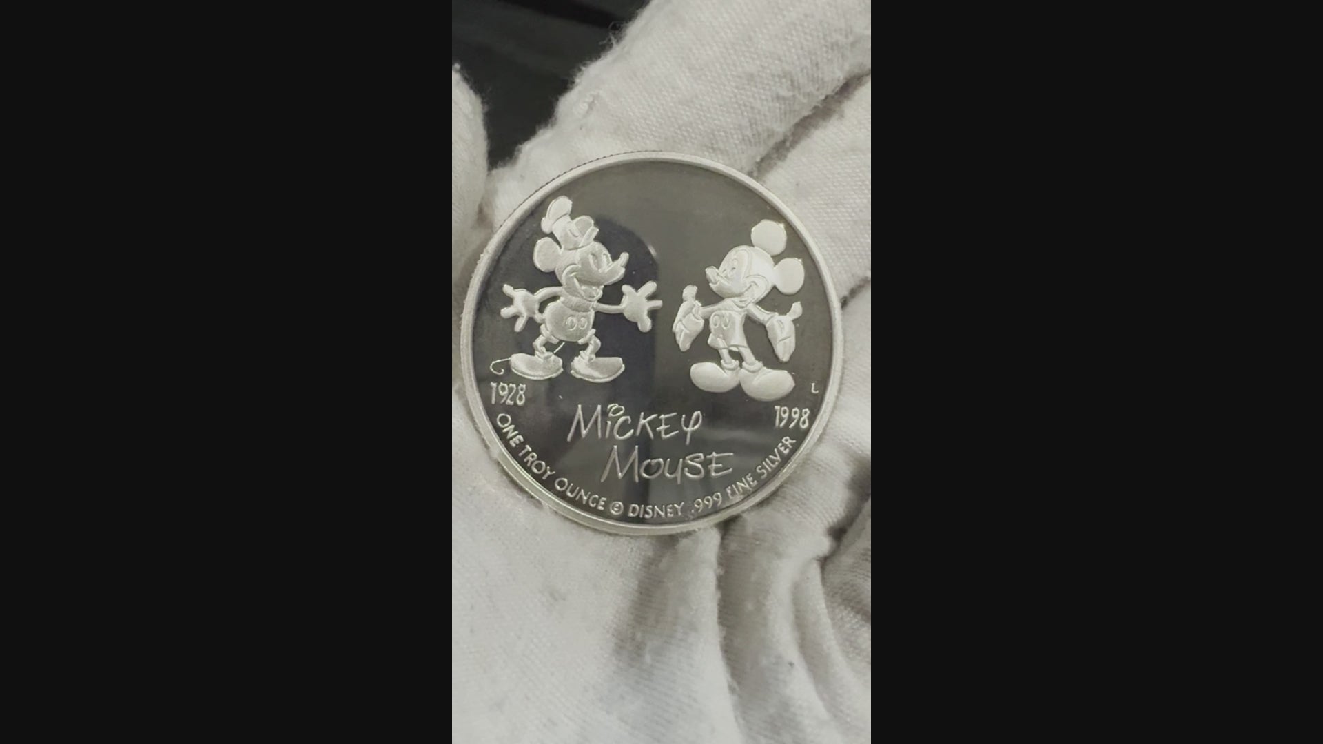 1998 Disney Mickey Mouse 70th Birthday 1 oz .999 Silver Coin COA #0422
