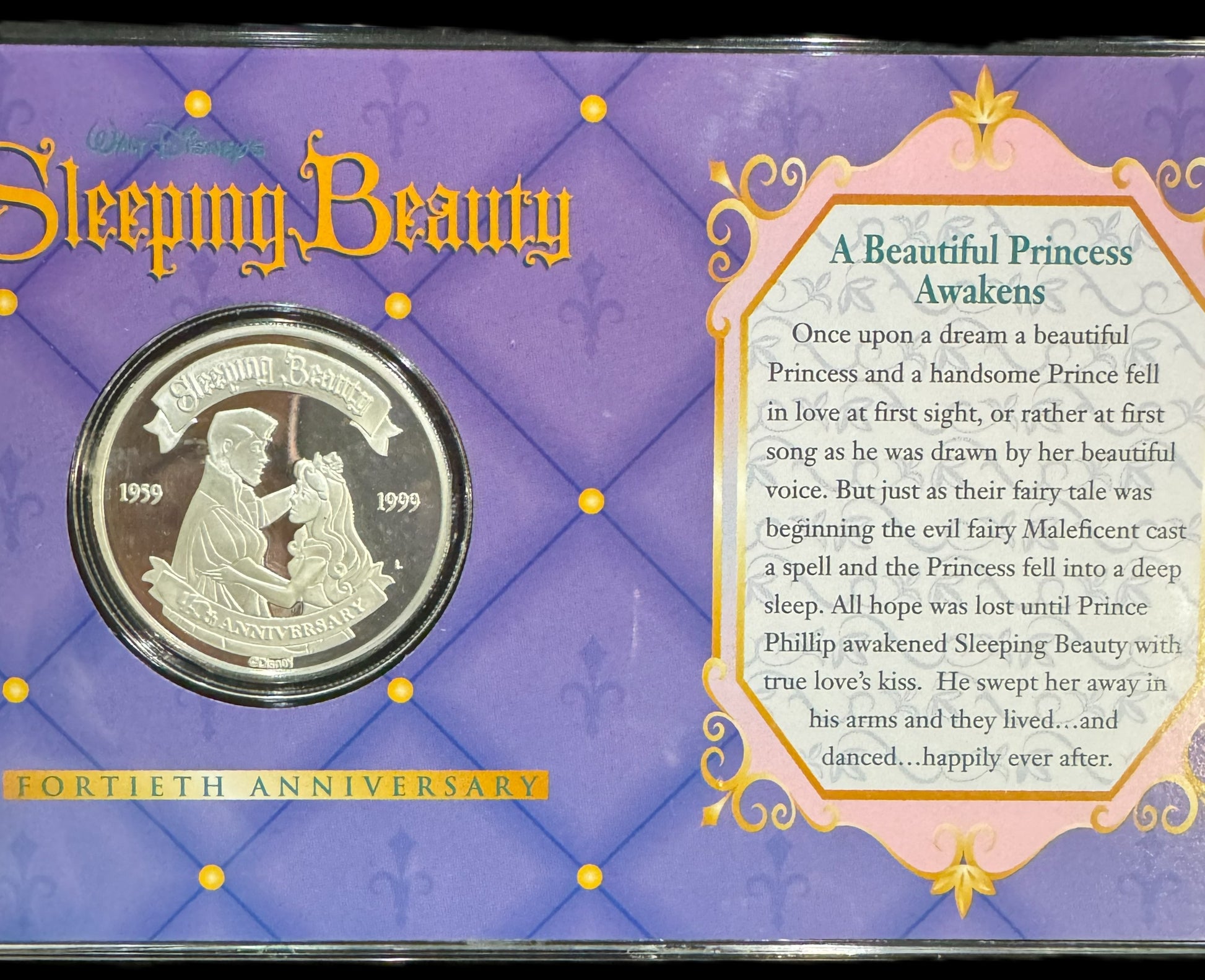 1999 Disney Sleeping Beauty 40th Anniversary 1 oz .999 Silver Coin
