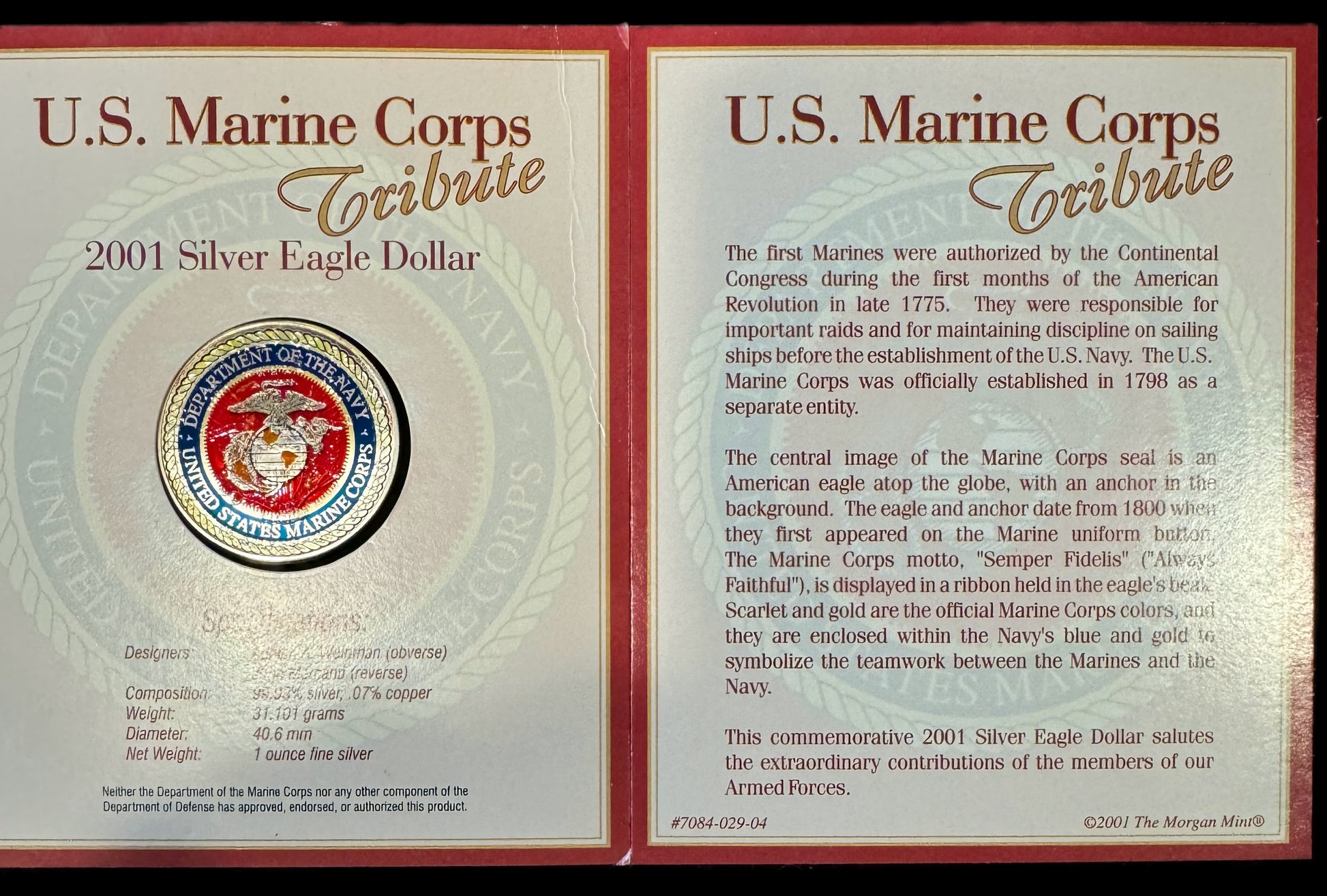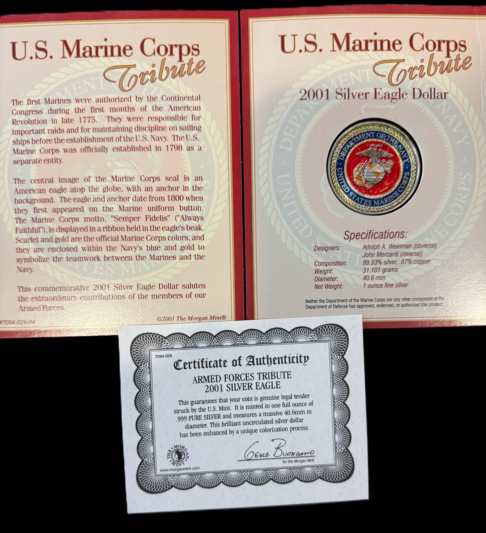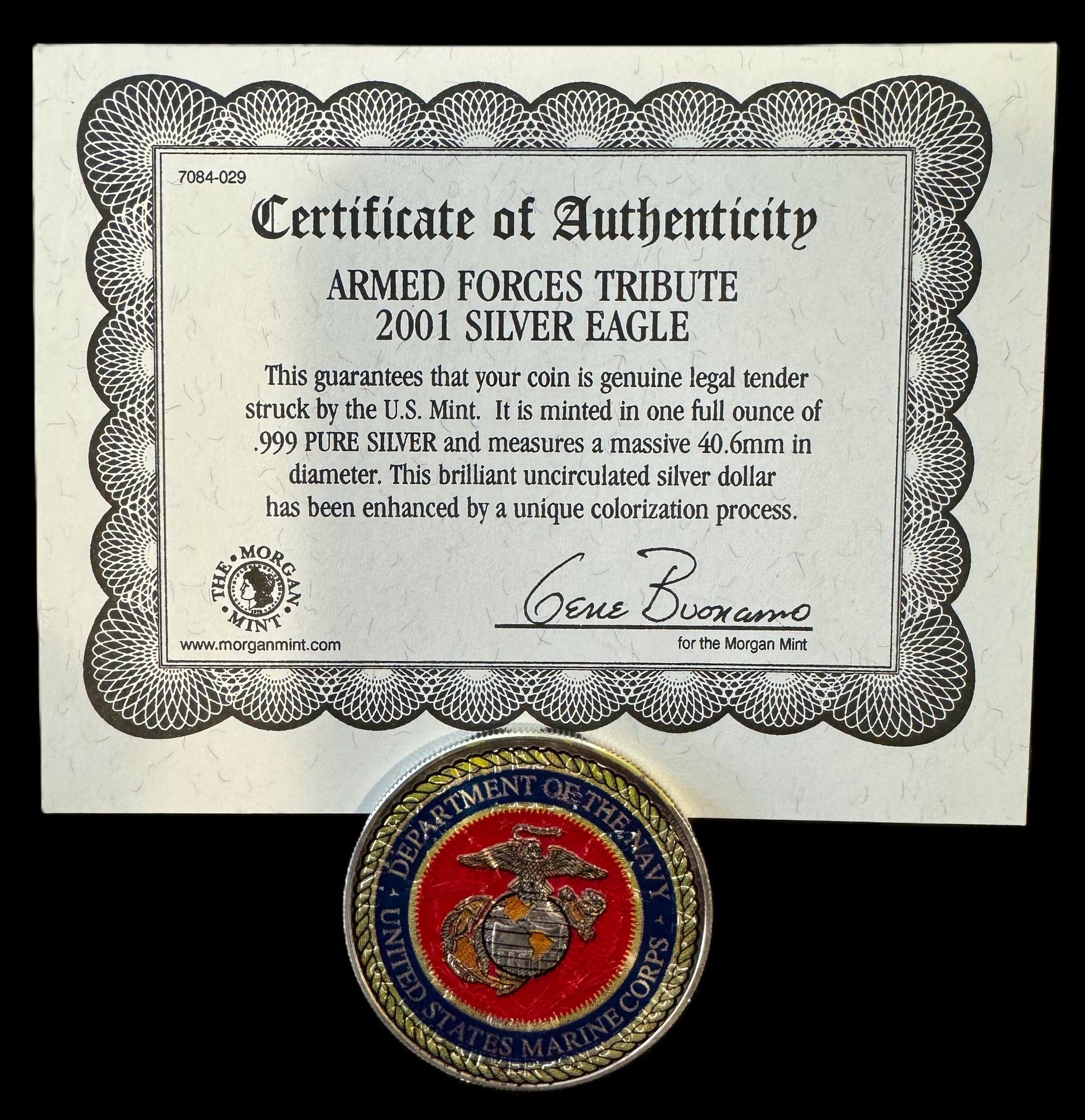 2001 American Eagle Lady Liberty Colorized USMC 1oz .999 Silver Coin