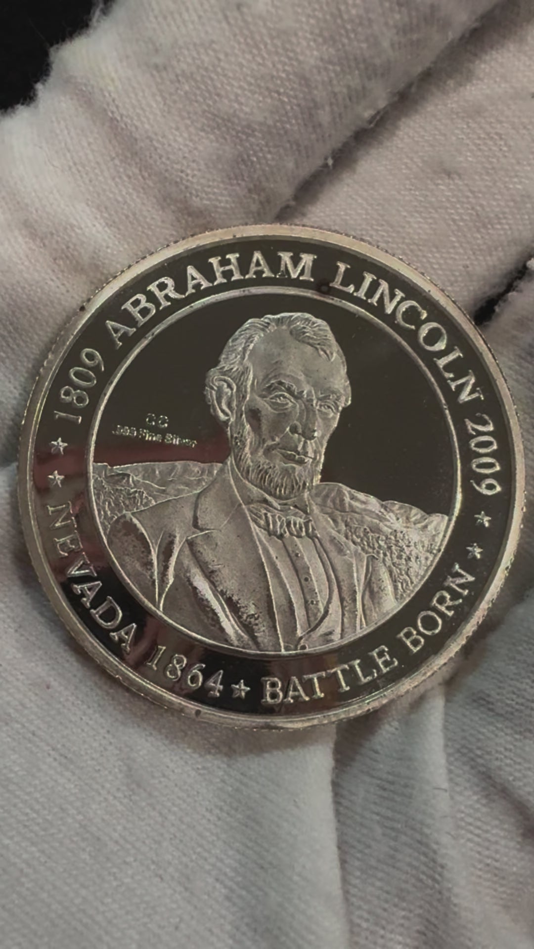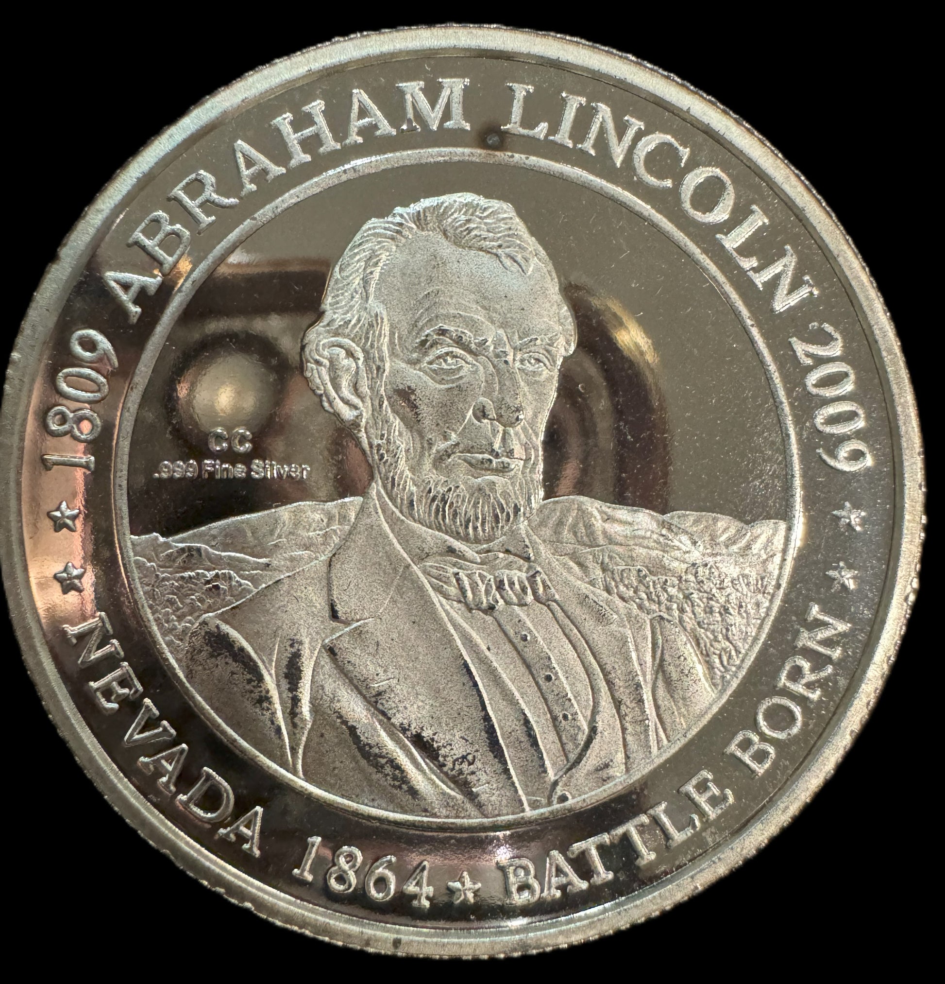 2009 Abraham Lincoln Nevada Battle Born 1 oz .999 Silver Coin