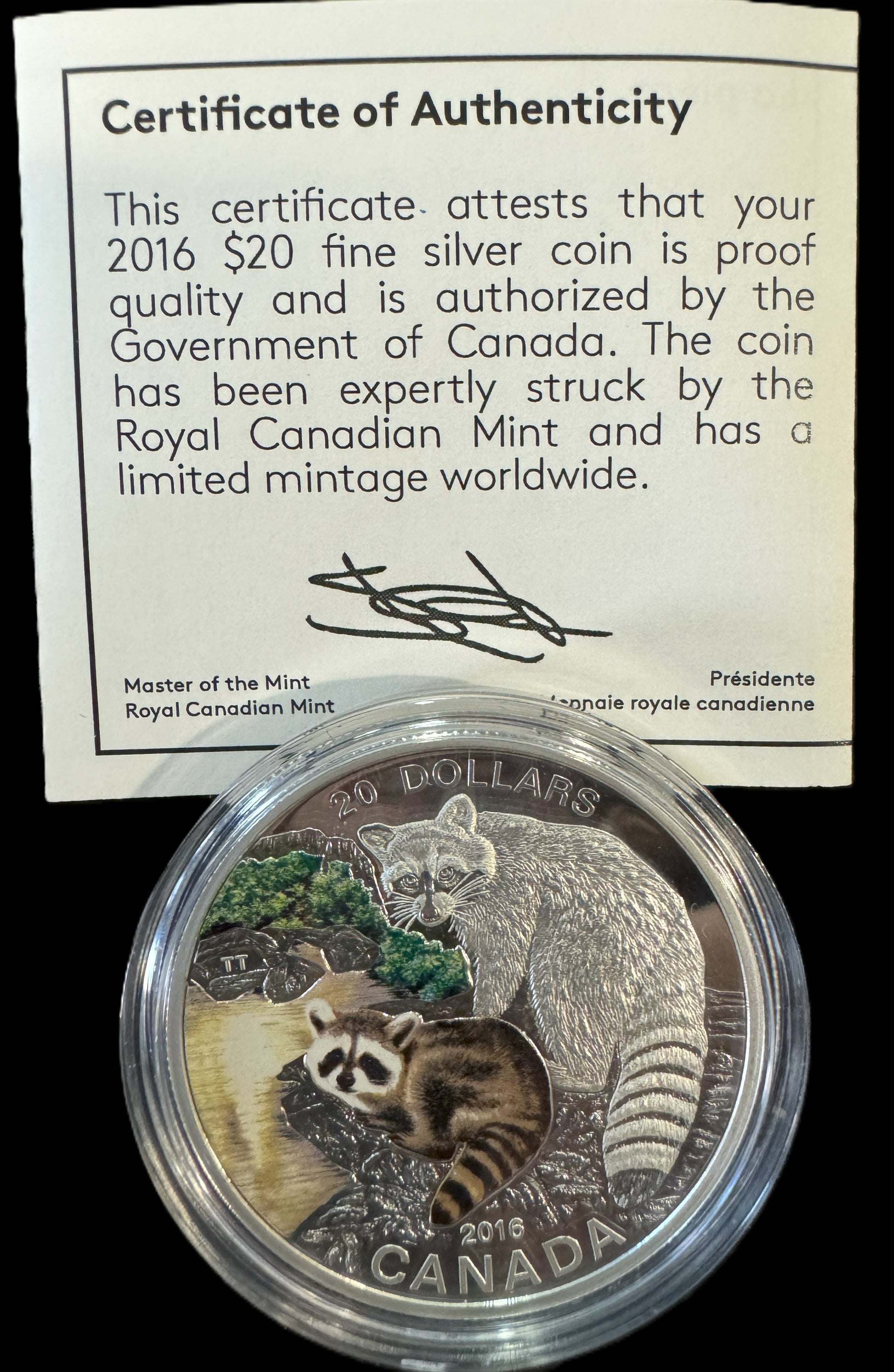 2016 Baby Racoon 1 oz .999 Silver Coin