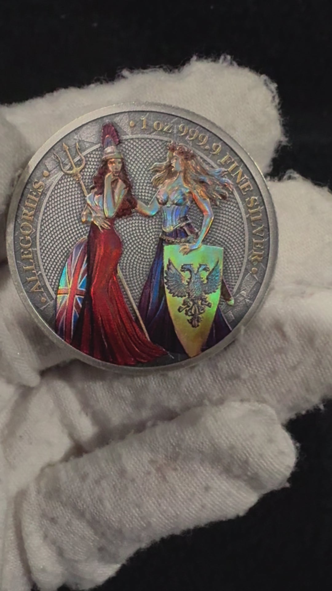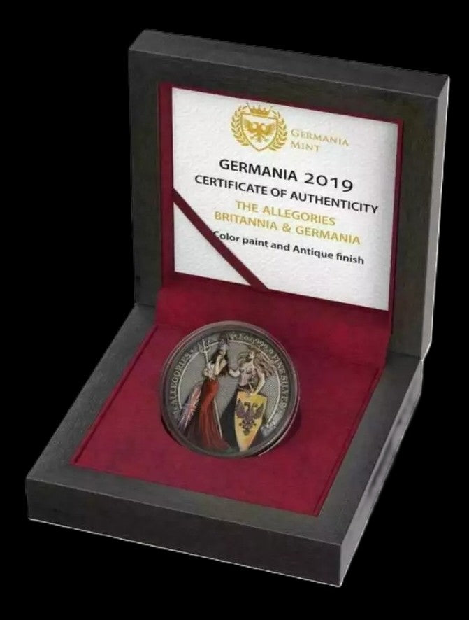The 2019 Britannia Germania 1 oz .999 Silver Coin is a unique and highly sought-after collectible coin that showcases a funky holographic colorized design. Minted in 2019, this coin features the Allegories Britannia Germania and is composed of 0.999 fineness silver. Certified as Mint Certified and with a precious metal content of 1 oz, this coin is a valuable addition to any coin collection. With a limited Certificate of Authenticity number 110, this coin is a rare and special piece for collectors and investors alike.