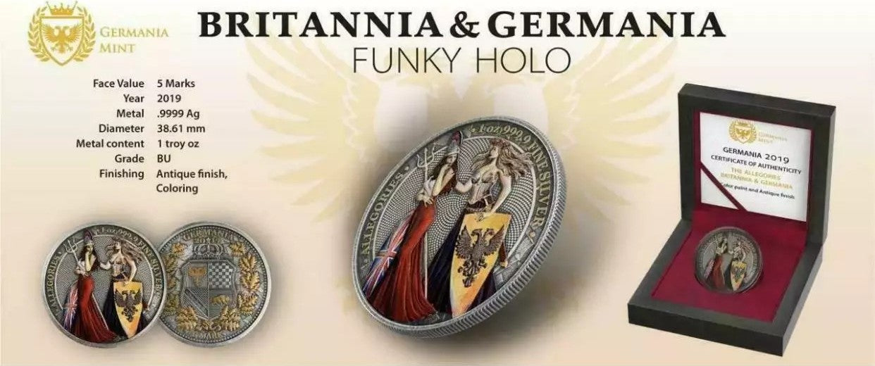 2019 Britannia Germania 1 oz .999 Silver Coin w/Funky Holo Colorized