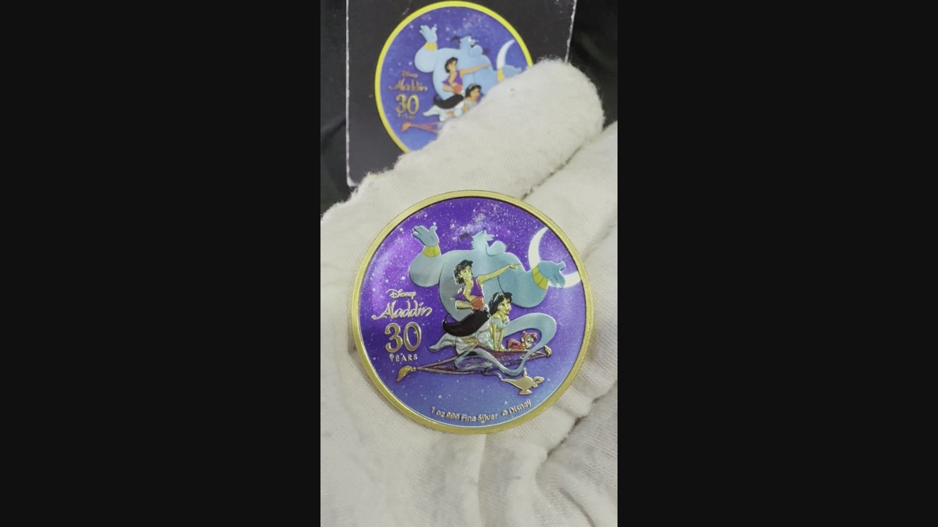 EXTREMELY RARE! HARD TO FIND! COA #079 OF 100 MINTED! The 2022 Disney Aladdin Whole New World Edition 1 oz .999 Silver Coin is a round silver coin featuring Aladdin from the popular Disney franchise. This coin, minted in Niue, has a fineness of .999 and a weight of 1 oz. It is part of the Disney Silver Coin collection and comes with a Certificate of Authenticity numbered 079. This contemporary collectible celebrates the enduring magic of Aladdin and is a must-have for fans of the Disney universe.