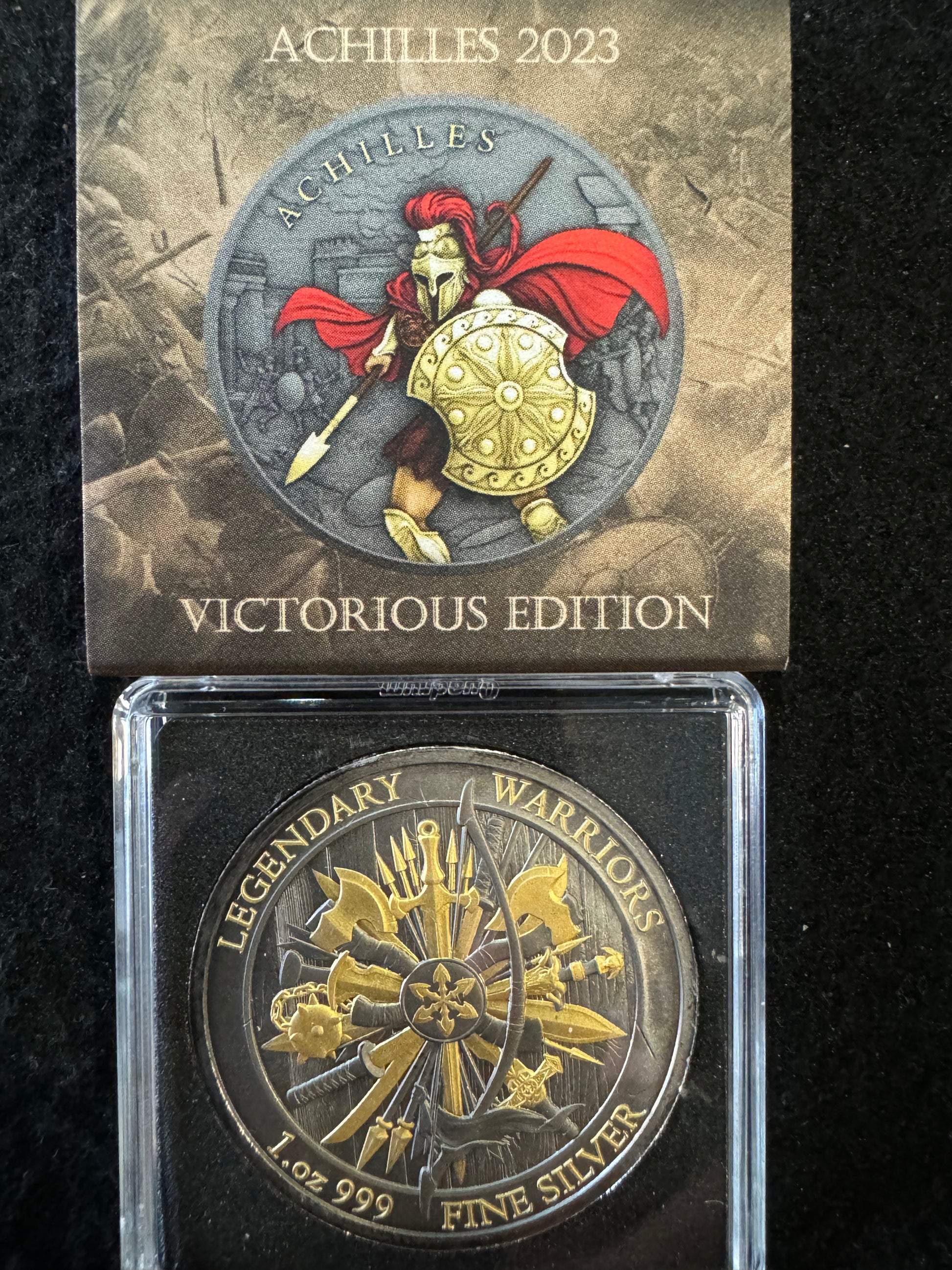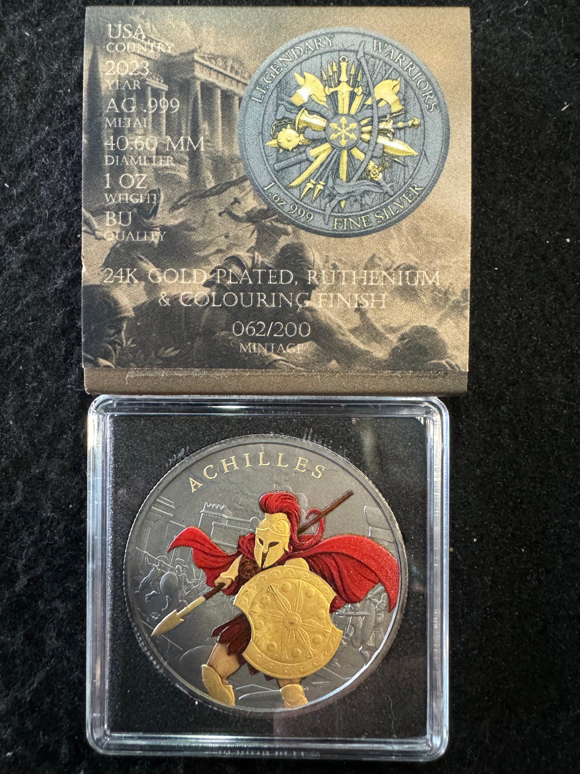 2023 Achilles Victorious Legendary Warriors 1oz .999 Silver Coin w24k Gold Gilding
