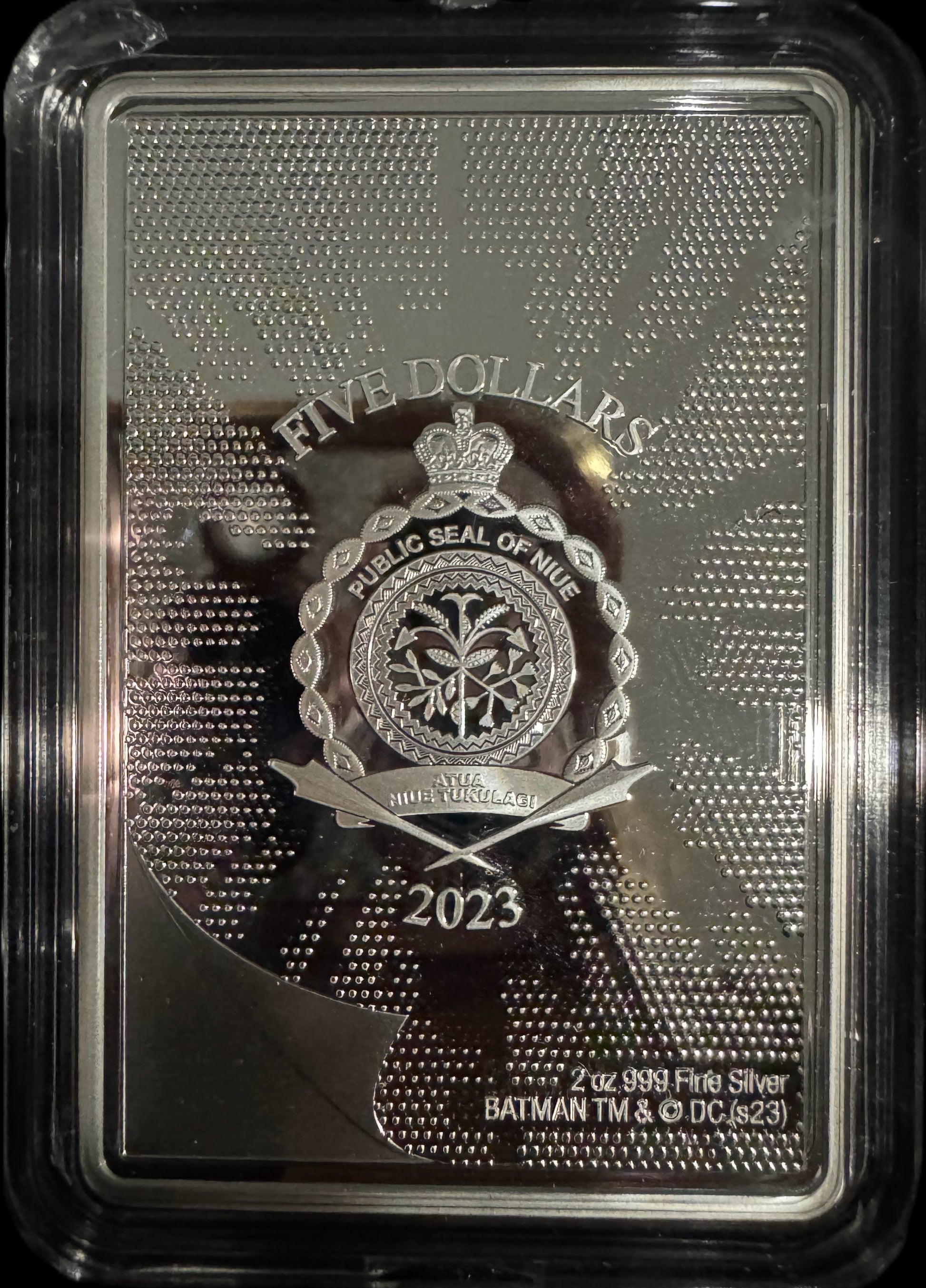 The 2023 DC Comics Series Batman 1st Edition 2 oz .999 Silver Bar is a beautifully crafted collectible piece minted by the New Zealand Mint for Niue. This limited edition silver bar features a stunning design of Batman, a beloved character from the DC Comics universe. With a fineness of 0.999, this 2 oz silver bar is a valuable addition to any collection and comes mint certified for authenticity. Perfect for fans of DC Comics and collectors of precious metal bullion, this unique piece captures the essence of the iconic superhero.