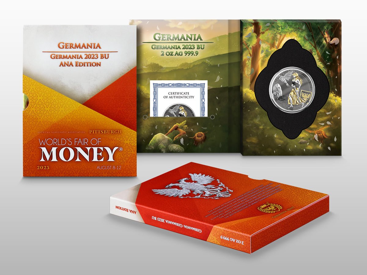 2023 Germania Ana Edition 2 oz .999 Silver Coin w/24K Gold Relief