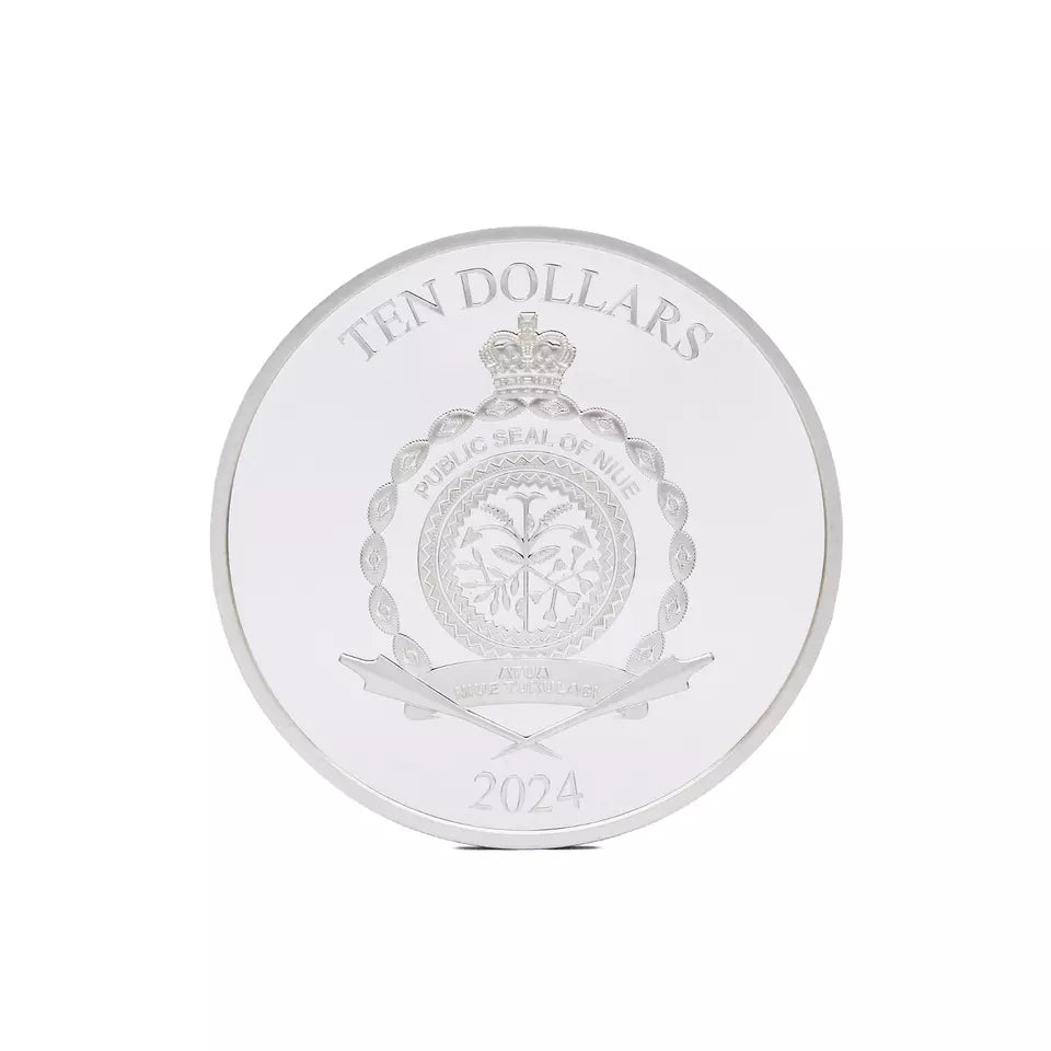 The 2024 Star Wars Chewbacca 3 oz .999 Silver Coin is a collectible piece minted by the New Zealand Mint for Niue. This proof strike coin features Chewbacca from the iconic Star Wars franchise, crafted from 3 ounces of .999 fine silver. With a limited mintage and high-quality composition, this coin appeals to both coin collectors and Star Wars fans alike.