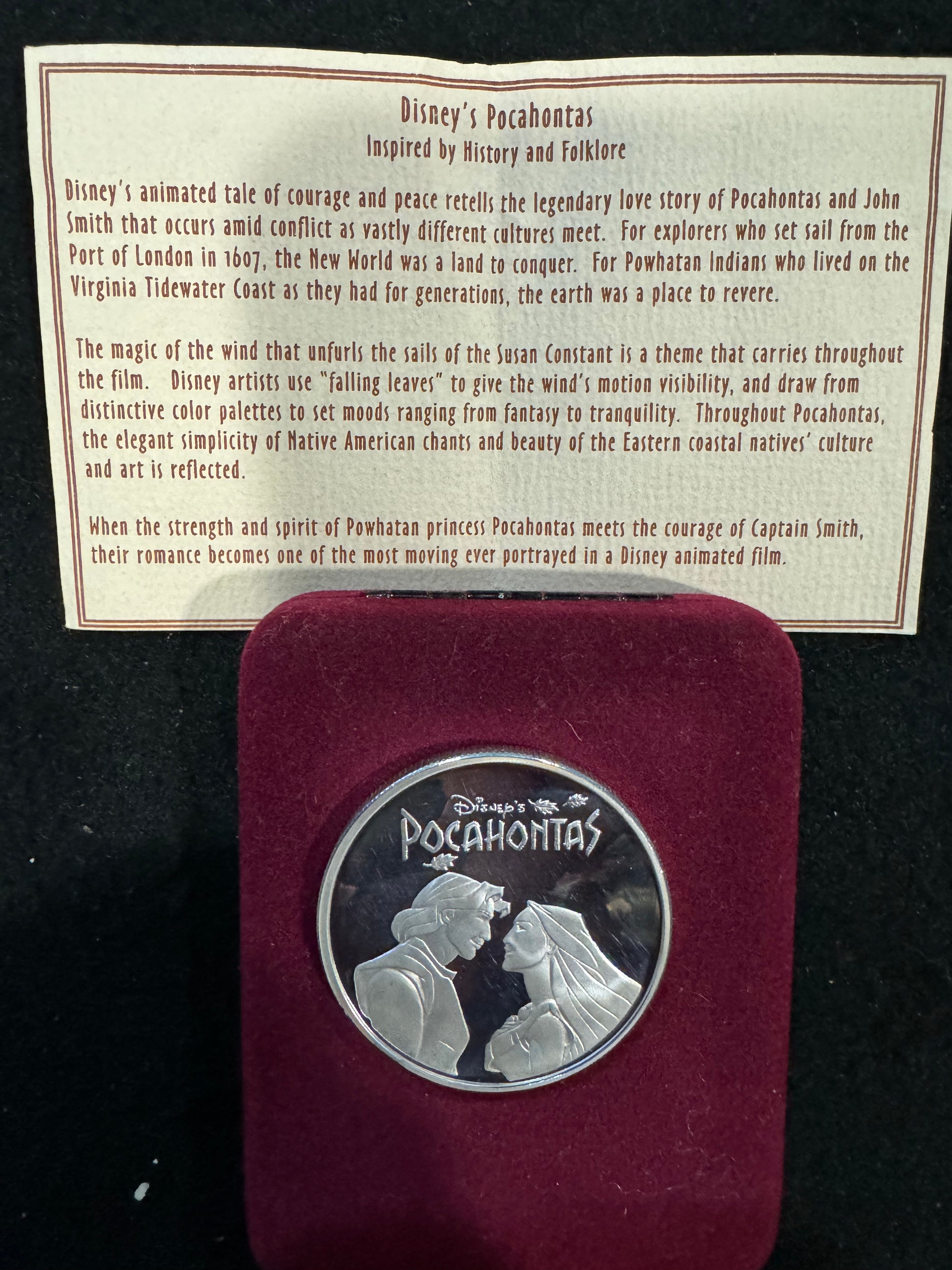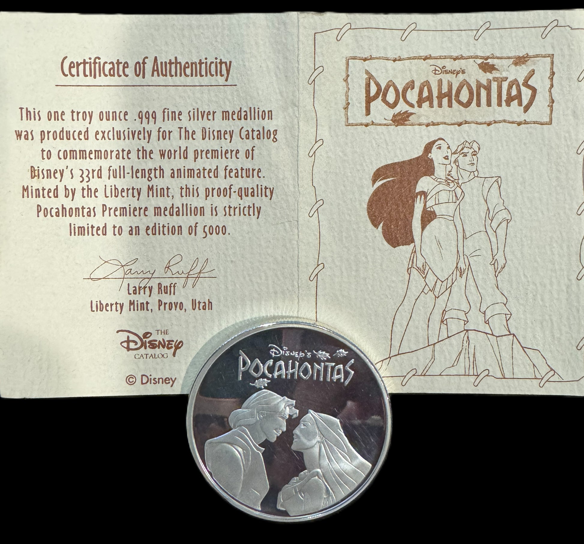 1995 Disney Pocahontas 1 oz .999 Silver Coin COA #00236