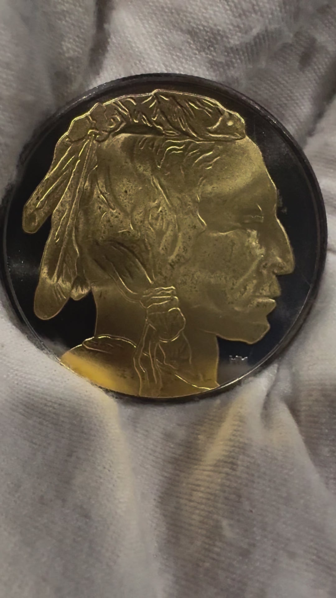 Indian Buffalo 1 oz .999 Silver Coin w24k Gold Relief & Black Ruthenium