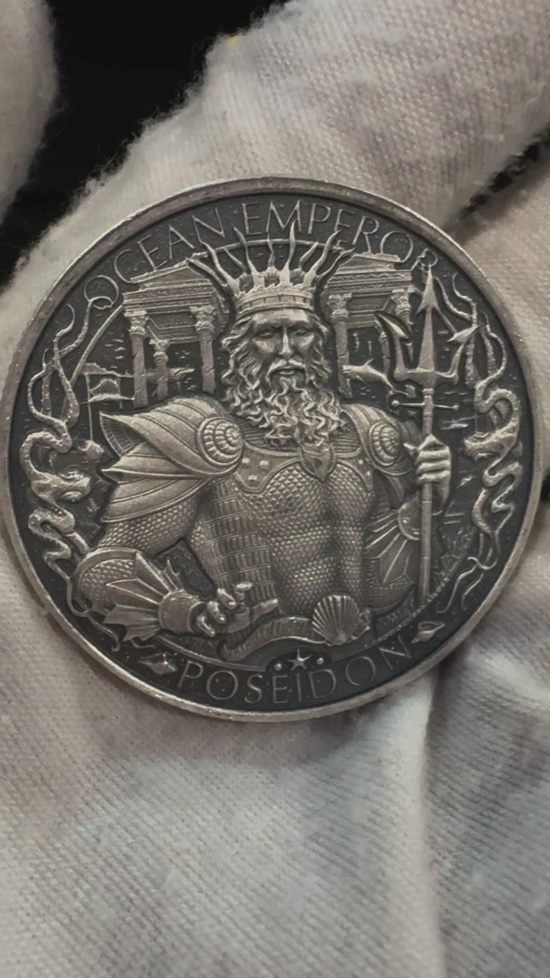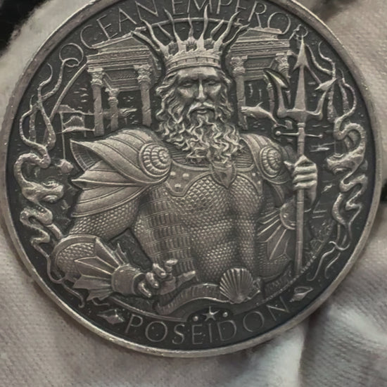 The Poseidon 1 oz .999 Silver Coin is a bullion coin made of 0.999 fine silver, weighing 1 ounce. This business strike coin features an image of Poseidon, the Greek god of the sea, on one side. The coin is minted in the United States and is uncertified. It is a popular choice among collectors and investors looking to add a piece of high-quality silver to their portfolios.