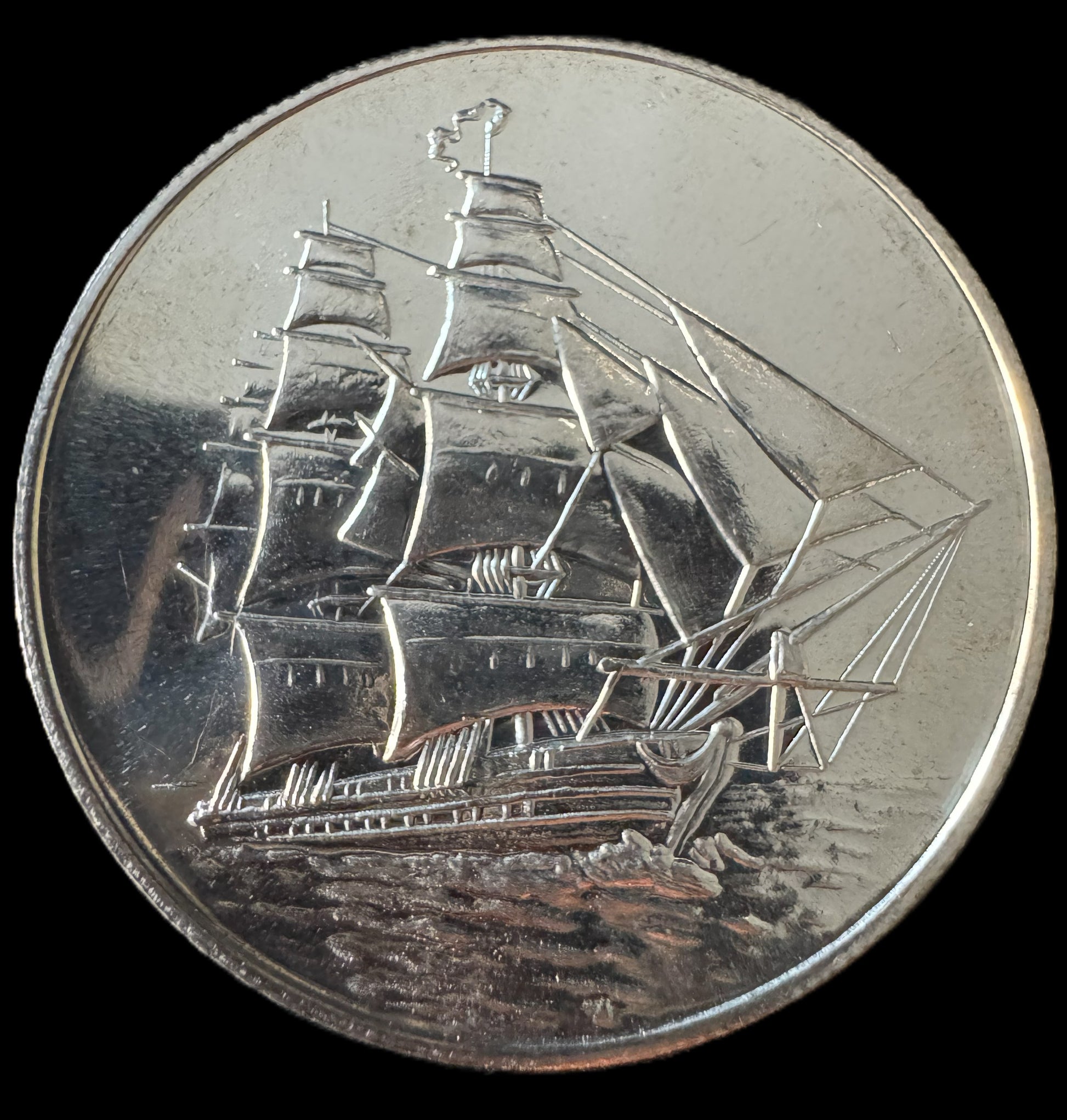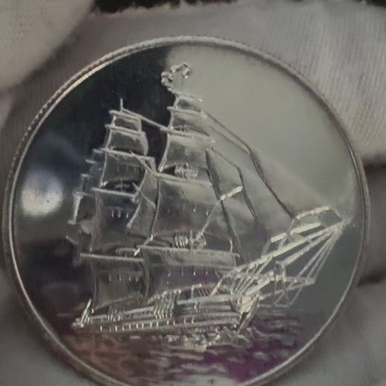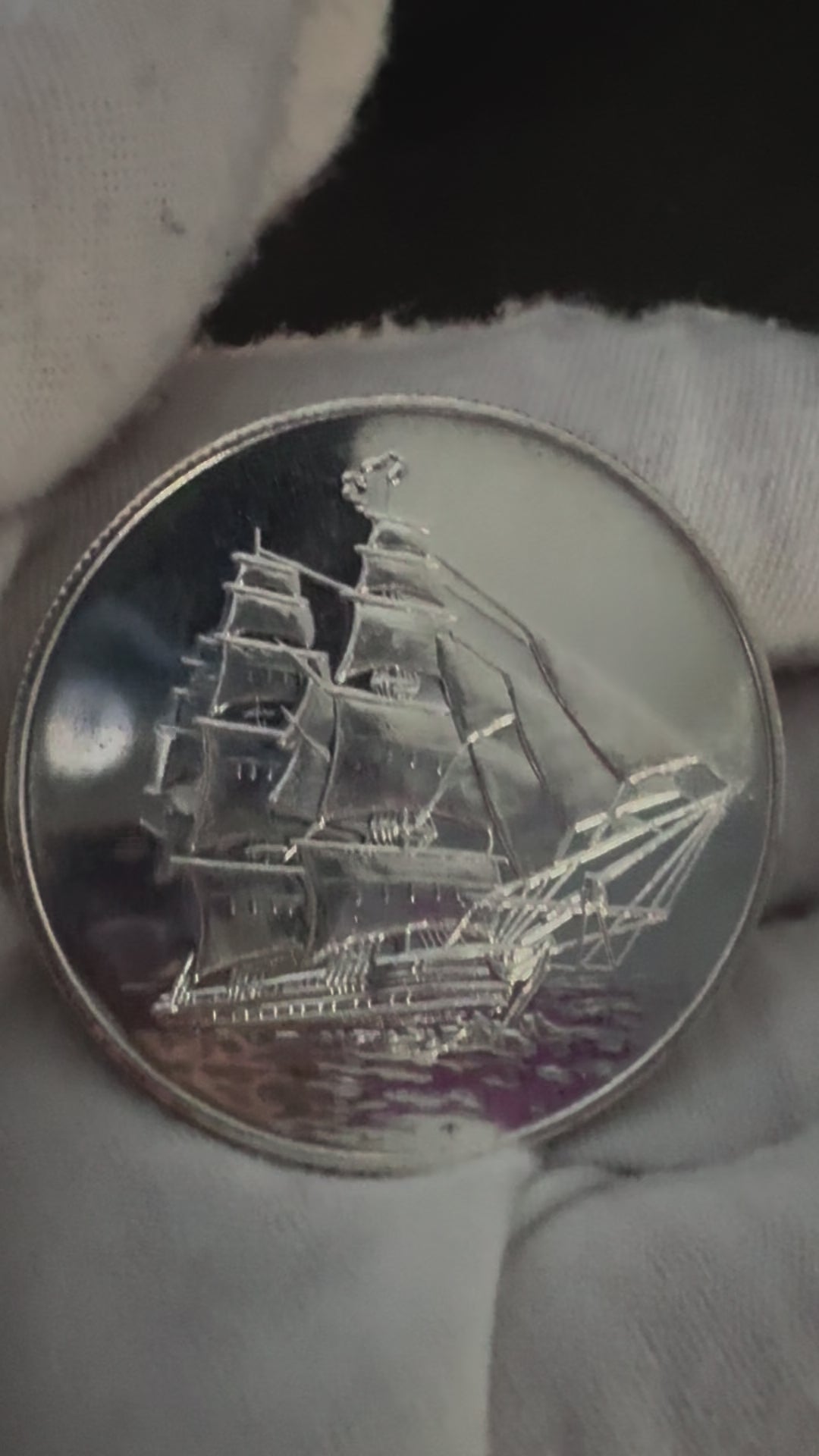 The "Sailing Ship 1 oz .999 Silver Coin" is a proof strike coin made of 0.999 fineness silver with a weight of 1 oz. The design features a sailing ship, reflecting a nautical theme. This coin was minted in the United States and is uncertified in terms of its authenticity or grade. It is a valuable piece for collectors or investors interested in silver bullion coins with a maritime design.