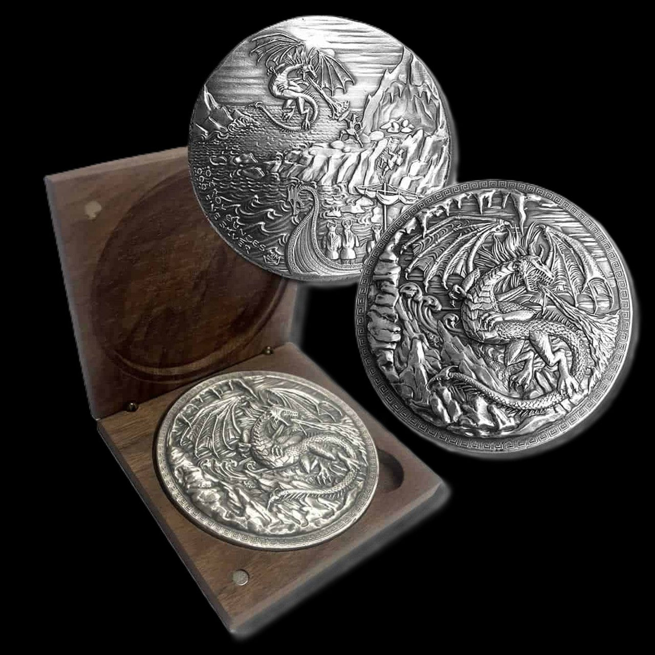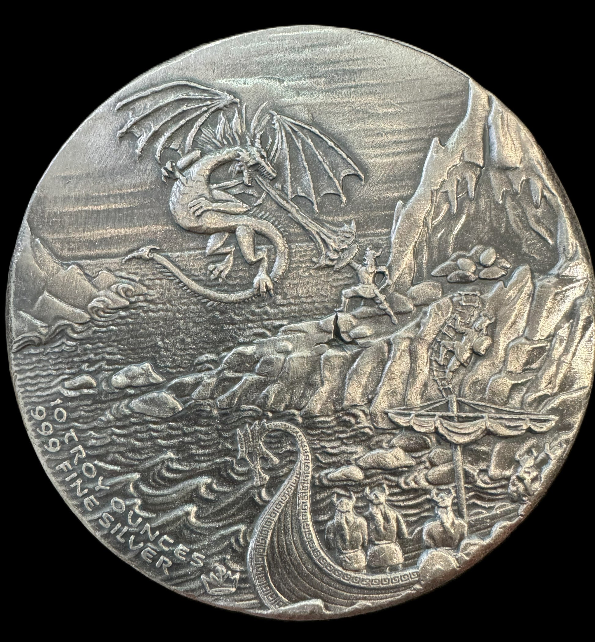 Silver Dragon vs. Viking 10 oz .999 Silver Coin