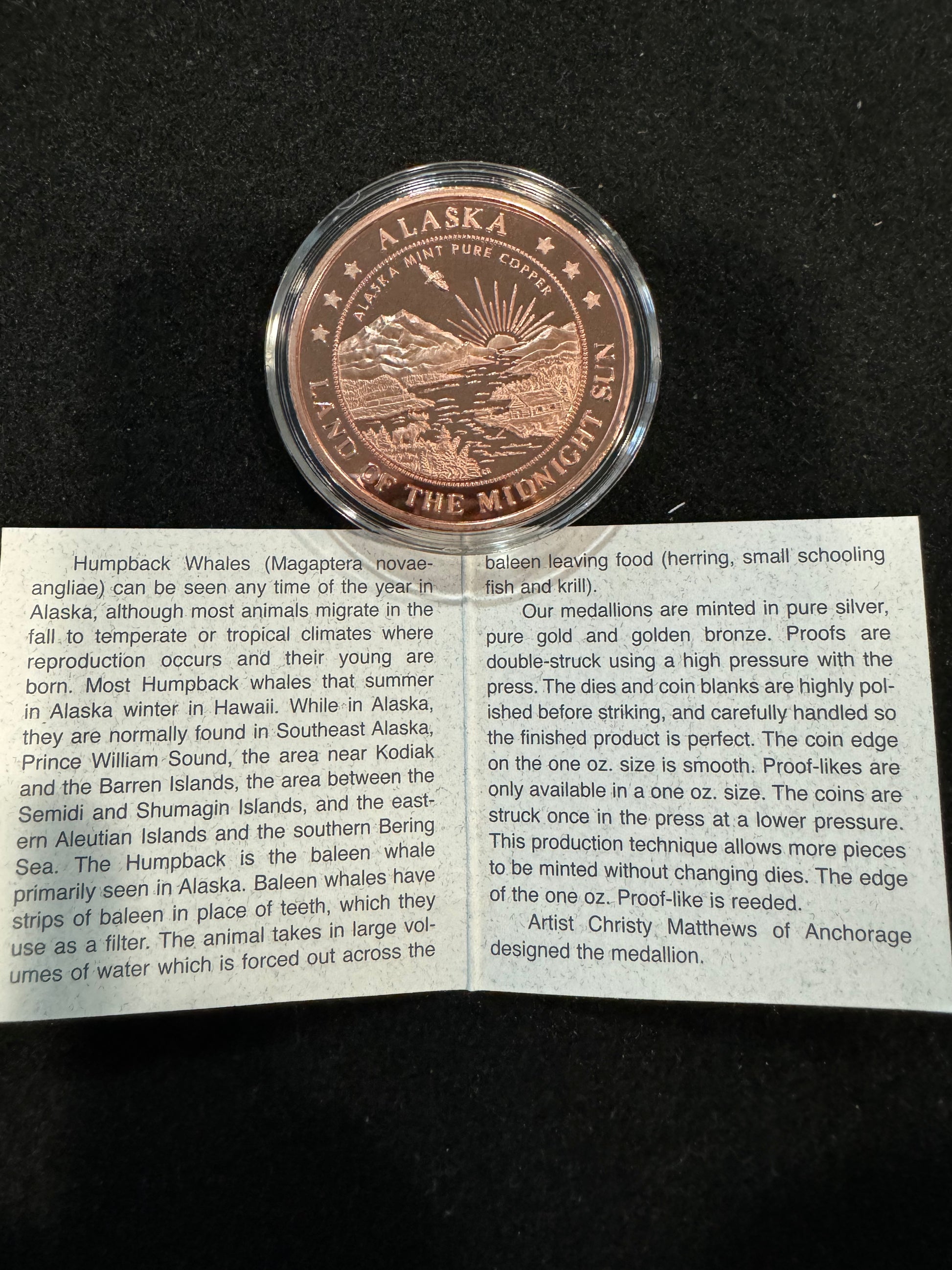 State of Alaska Humpback Whale w/Calf 1 oz .999 Copper Coin